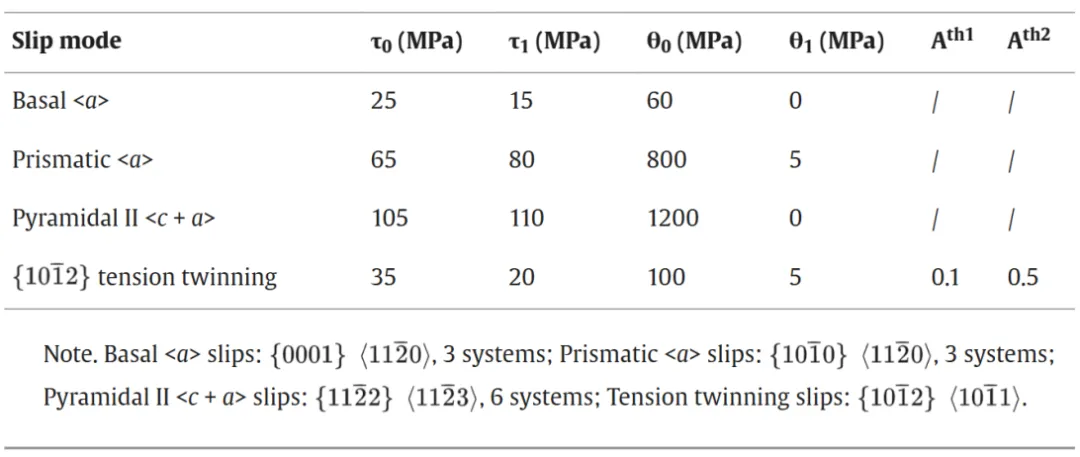 表5 本研究中用于VPSC模拟的滑移系统硬化参数。
