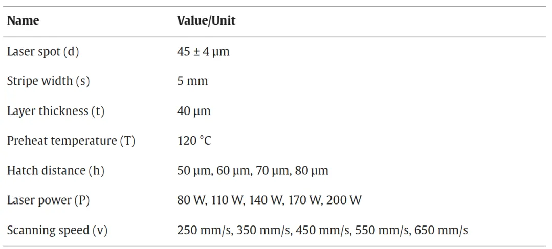 表1 SLM在不同状态下制造了WE43合金