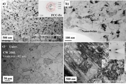 (1)ECAP处理的NC 316 L具有优异的晶粒稳定性(<5%的尺寸变化),保留了(111)织构优势并且没有非晶化。