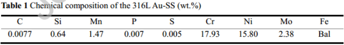 表1 316L Au-SS的化学成分(wt.%)