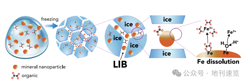 《美国国家科学院院刊》近期发表的一项研究,通过实验模拟,探究了冰冻环境中氧化铁纳米矿物的溶解过程。研究发现,冰并非惰性物质,而是一个高效的化学反应器。结冰过程会将矿物、有机物和酸性物质浓缩在冰晶间的微型液态水中,这种“冰冻浓缩效应”极大地促进了铁的溶解。这一发现为理解永久冻土、酸性土壤等冰冻环境中铁的迁移提供了关键机理,并有助于解释气候变化加剧的冻融事件如何向自然界释放更多可溶性铁。 当我们想到冰,脑海中浮现的往往是静止与封存的景象。然而,最新的科学研究揭示了一个令人惊讶的事实:在冰冷的、看似沉寂的世界里,冰本身就是一个高效的化学反应器,能够以前所未有的方式驱动化学变化。这一发现对于理解全球气候变化如何影响地球的生态系统至关重要,尤其是在解释北极(Arctic)地区河流为何出现“生锈”现象等问题上。铁是地球上一种至关重要的元素,是无数生命过程的基础。在自然界中,大部分铁以不溶于水的矿物形式存在,例如针铁矿。生物体要想利用铁,必须先将其转化为可溶性形态。传统上,我们认为这一转化过程在温暖的液态水中更为活跃。但一项新研究彻底颠覆了这一认知,它聚焦于冰冻环境中铁的溶解过程。 研究人员发现,当含有微小针铁矿颗粒、有机物(如广泛存在于土壤中的草酸盐)和酸性物质的水开始结冰时,一个奇妙的过程便发生了。纯净的水分子会优先形成冰晶,而水中的杂质——矿物颗粒、草酸盐和带来酸性的质子——会被排挤到冰晶之间尚未冻结的微小液态水区域中。这个过程被称为“冰冻浓缩效应”。它将原本分散在大量水体中的反应物,高度集中在这些冰晶间的微型液态“口袋”里。浓度急剧升高,极大地加速了化学反应的速率。在这种高度浓缩的酸性环境中,草酸盐能更有效地从针铁矿表面“抓取”铁离子,使其溶解进入液态水中。这个过程甚至在零下30°C的低温下依然能够进行。 在某些条件下,冰的“工作效率”甚至超过了温暖的液态水。实验数据显示,在高浓度有机物存在时,零下10°C的冰溶解的铁比4°C的液态水还要多;而在低浓度有机物条件下,其溶解的铁甚至超过了25°C的液态水环境。这表明,冰冻浓缩带来的反应增强效应,完全压倒了低温导致的反应速率减慢效应。 此外,研究还揭示了其他关键因素的影响。例如,高盐度(类似海水)会抑制铁的溶解,因为盐分析子会与有机物竞争矿物表面的反应位点。而反复的“冻融循环”则会进一步促进铁的释放。每一次融化都会让之前被锁在冰晶内部、未能参与反应的有机物重获自由,待下一次结冰时,这些“生力军”便会加入到新一轮的浓缩反应中。 这些发现有助于我们理解全球广阔的冰冻圈(Cryosphere)中的地球化学过程,无论是酸性硫酸盐土壤、大面积的永久冻土(permafrost),还是悬浮在大气中的尘埃气溶胶。例如,飘浮到极地海洋上空的含铁尘埃在冰冻的云层中,可能会通过这一机制释放出更多可溶性铁,从而影响海洋的初级生产力。随着全球气候变暖,冻融循环日益频繁,永久冻土加速融化,这一由冰驱动的铁释放机制正变得愈发重要。它有助于解释为何在融雪和冰川融化期间,我们会在自然流域中观测到可溶性铁通量的增加。这项研究不仅揭开了冰封之下隐藏的化学奥秘,更为我们评估气候变化对地球元素循环和生态系统健康的影响,提供了宝贵的科学依据。 文章链接:https://doi.org/10.1073/pnas.2507588122 (2025)