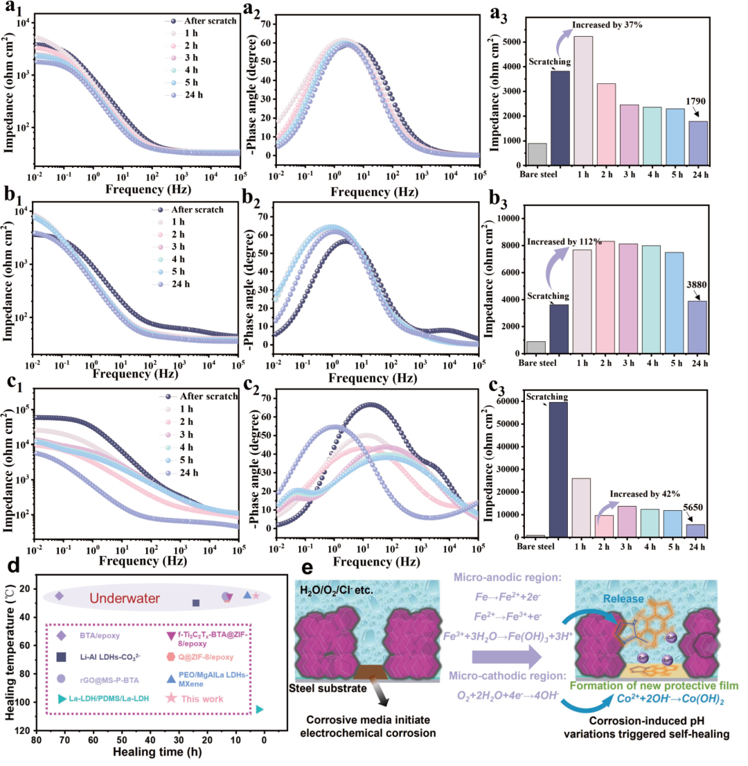 这项工作提出了一种仿生策略用于开发兼具超疏水性、自修复和实时损伤感知的智能防腐蚀涂层,推进了MOF衍生材料在防护涂层中的应用。