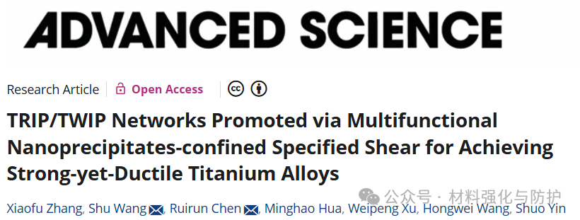 本研究为钛合金实现高强高塑提供了新的范式,通过纳米析出物精确调控局部剪切与相变序列,可在不牺牲延展性的前提下实现显著强化,这一析出相诱发TRIP/TWIP的耦合机制不仅突破了钛合金的强塑瓶颈,也为高熵合金、马氏体钢等体系的强塑性调控提供了可推广的策略。