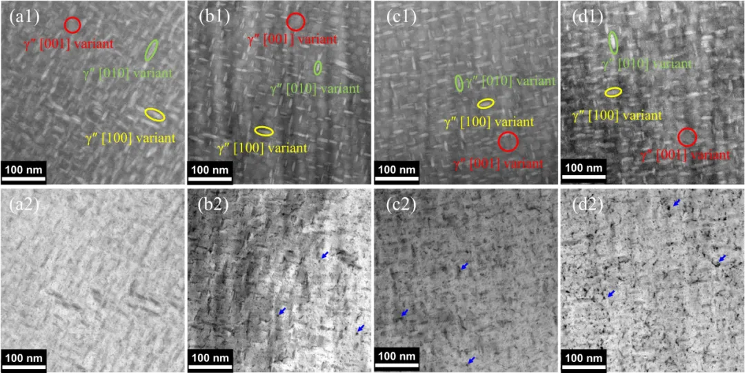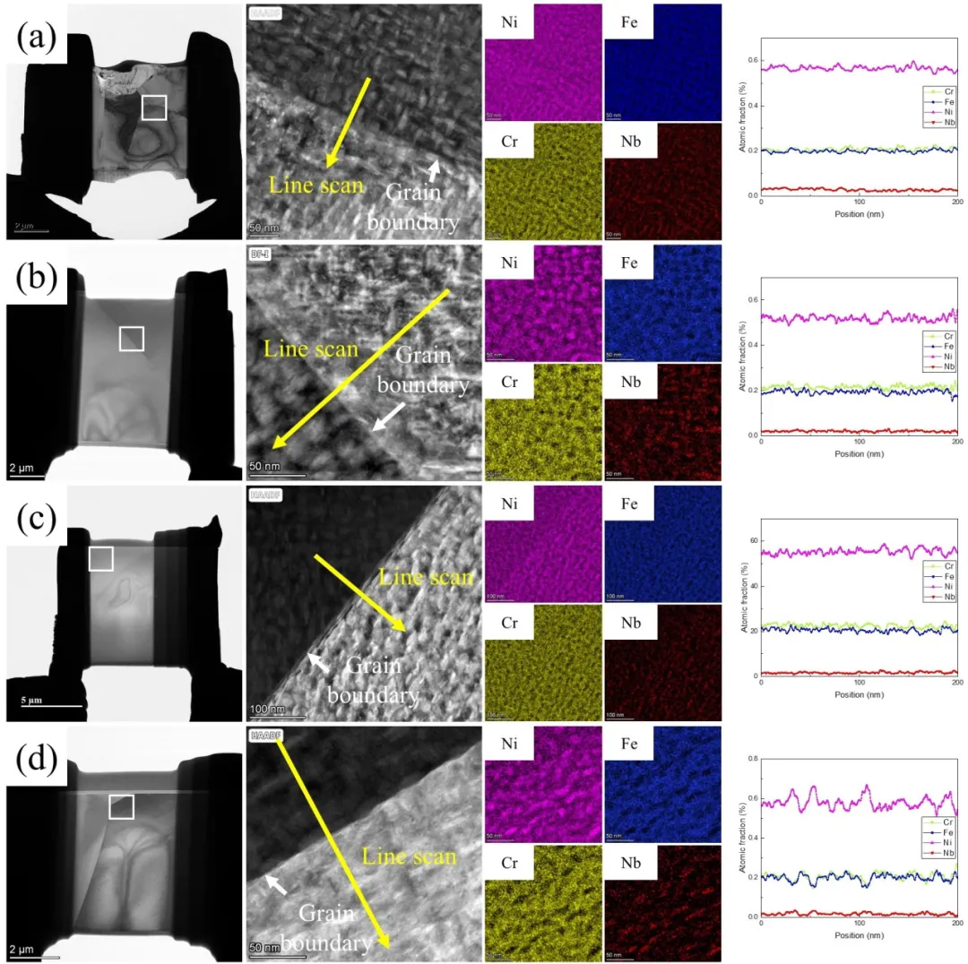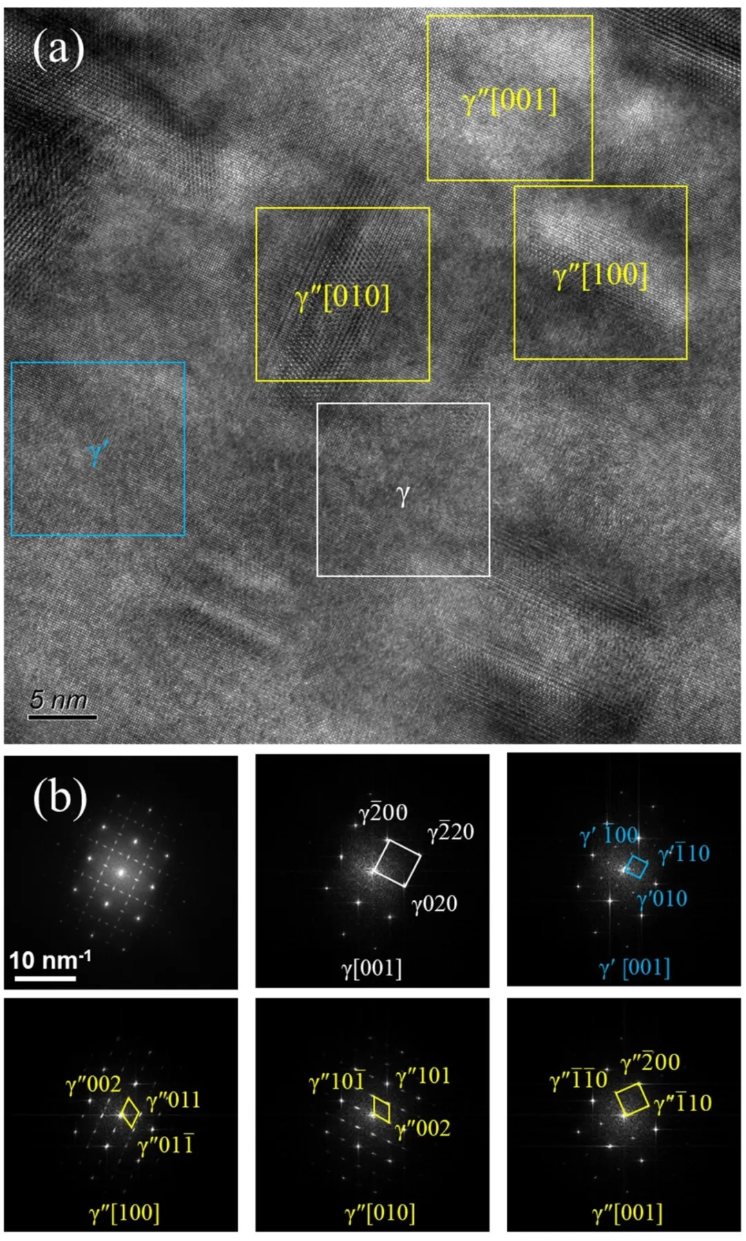 核燃料组件(由燃料棒、定位格架及支撑结构组成)是反应堆内的产热部件,同时构成第一道安全屏障。718合金作为一种沉淀强化型镍基高温合金,因其高强度、优异的抗辐照肿胀性能及卓越的耐腐蚀性能,被用于制造燃料组件定位格架弹簧等堆内构件。燃料组件定位格架弹簧长期处于强中子辐照与高温高压水腐蚀环境,易发生辐照辅助应力腐蚀开裂。目前,全球多座轻水堆中已出现718合金的辐照致性能退化现象。辐照对合金的影响包括非平衡偏聚、微观结构演变及硬度变化等,这些均可能导致材料性能退化或失效。当前关于718合金辐射损伤的研究多集中于析出相损伤与宏观力学性能变化,但多数研究尚未系统关注γ″相存在的三种晶体学变体,而不同变体可能表现出截然不同的辐照损伤行为。同时,低剂量质子辐照对材料力学性能的影响机制也亟待深入探究。 近日,我院检测中心张志明研究员与中国科学院金属研究所相关团队研究探讨了低剂量质子辐照下718合金的微观结构演变与硬度变化规律,揭示了其组织演化规律与辐照硬化机制。相关研究成果以“The role of microstructural evolution in irradiation hardening of Alloy 718 under low dose proton irradiation”为题发表在核材料研究领域权威期刊《Journal of Nuclear Materials》上。 正文 原论文首页 在315℃下,采用1.5 MeV质子对718合金进行辐照,位移损伤剂量分别达到0.02、0.04与0.09 dpa。微观结构表征结果表明,低剂量质子辐照对Alloy 718的影响主要表现为辐照缺陷、γ″相无序化及辐照硬化,未观察到空洞与辐照诱导偏析现象。质子辐照剂量越高,缺陷密度越大,但缺陷尺寸随辐照剂量增加未发生显著变化。受位移级联与替换碰撞作用,γ″相会发生会失去其有序结构仍保持四方晶体结构。在相同辐照剂量下,γ″相的三种变体表现出不同的稳定性,其中[001]方向平行于质子束的变体最为稳定。随着辐照剂量升高,材料硬度呈现先下降后上升的变化趋势。该力学性能演变由辐照缺陷导致的硬化效应与γ″相无序化引发的软化效应共同驱动。在0.04 dpa辐照剂量下,γ″相无序化起主导作用,材料硬度达到最低值;当辐照剂量增至0.09 dpa时,受缺陷-位错相互作用影响,硬度达到最大值。 图1. 不同辐照剂量718合金EDS面扫描和线扫描结果:(a)0 dpa;(b)0.02 dpa;(c)0.04 dpa;(d)0.09 dpa 图2. 不同辐照剂量718合金的SAED和DF像:(a)0 dpa;(b)0.02 dpa;(c)0.04 dpa;(d)0.09 dpa 图3. 不同辐照剂量718合金的HADDF和BF像:(a)0 dpa;(b)0.02 dpa;(c)0.04 dpa;(d)0.09 dpa 图4. 718合金中γ″相三种变体的HRTEM像以及对应的FFT图案 图5. 辐照后718合金硬度随深度的变化曲线(a)和硬度随剂量的变化曲线(b)
