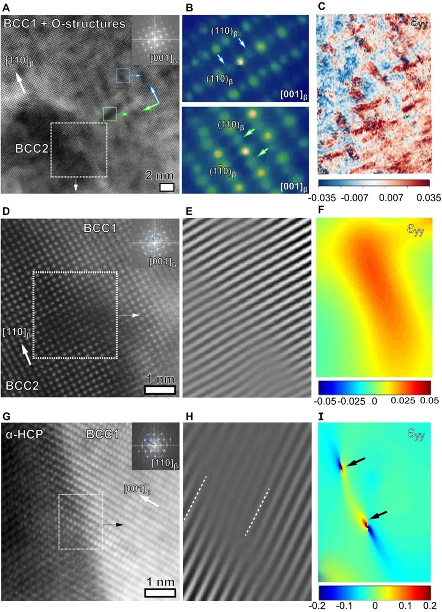 调幅结构和层状结构的协同作用可以使合金既实现强化又避免脆化。其中,调幅结构是依靠成分波动阻碍位错运动,且正交相/O'相和α-HCP析出相起到了共格应变强化,细调幅区应变可达0.775%。层状结构则是通过富Nb BCC层的位错受限滑移或位错堆积强化,且富Nb区本身具备延展性,能够促进均匀塑性。