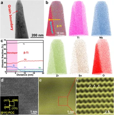 导读:由于其卓越的机械性能和生物相容性,β-Ti合金在生物医学领域引起了广泛关注。然而,同时提升屈服强度和延展性仍是一个持续的挑战,限制了其更广泛的应用。本研究中,我们仅将0.3 wt.%的间隙氧原子引入β型Ti-35Nb-9Zr-7Sn合金,诱导晶界处的局部化学有序(LCO)和面心立方(FCC)纳米层,显著提升了原均质和輯成试样的屈服强度和伸长性。通过将平面位错滑移转化为波状滑移,粒内LCO结构促进双重交叉滑移和位错倍增,共同增强应变硬化行为。与此同时,间隙中由氧驱动的FCC相纳米层促进位错在晶界上滑移,进一步提升延展性。这种以氧气为驱动的策略克服了传统的强度与延展性权衡,为设计下一代承载生物医学β-Ti合金提供了有前景的道路。 对长寿、健康和高生活质量的追求持续推动了对先进生物医学材料的需求,尤其是那些用于修复或替换病变组织和器官的材料。金属生物材料因其独特的高强度、可加工性、耐用性和良好的血液相容性而成为承重医疗设备的重要组成部分。虽然不锈钢和钴基合金曾被广泛使用,但由于其高弹性模数带来的有毒离子释放和应力屏蔽效应的担忧,其临床应用已被限制。 由于镁(Mg)基和钛(Ti)基金属生物材料弹性模量低且在人体条件下生物相容性更佳,其应用代表了减少应力屏蔽效应的两大主要途径。镁基合金因其在生理环境中的快速腐蚀速度,成为新一代可生物降解生物材料的革命性应用,这可能消除修复后移除植入物组件的必要。然而,镁基合金的主要限制在于其在生理条件下的快速腐蚀,导致氢气快速释放。相比之下,钛合金具有稳定的长期机械性能、优异的耐腐蚀性和可靠的生物相容性,使其特别适合永久或长期承载应用。因此,虽然Mg合金为临时植入物提供了独特优势,钛合金仍是开发下一代生物医学材料以实现持续承载应用的更坚实基础。 在各种钛合金中,β-Ti合金的弹性模量与皮层骨高度匹配,有效减轻了应力屏蔽,降低了植入物修复的风险。研究最深入的生物医学β-Ti系统包括基于Ti-Zr的、基于Ti-Mo的Ti-Nb-based 以及基于Ti-Ta的合金。例如,Ozan 等人制造了一种β型 Ti-Nb-Zr 合金,杨氏模数为 62 GPa,其细胞存活率高于对照组,具有优异的细胞相容性。Bertrand 等人合成了一种β型 Ti-Ta-Nb 合金,杨氏模量为 55 GPa,Ti-Ta-Nb 合金在腐蚀和离子释放率方面低于商业纯钛。尽管有这些优势,大多数生物医学β-Ti合金仍无法满足医疗金属植入物的长期应用要求。这主要归因于通过亚稳态相诱导马氏体转变提升了延展性和极限拉伸强度,但它们通常表现出较低的屈服强度(通常低于400兆帕),限制了其长期承载性能。由于屈服强度决定材料对塑性变形的抵抗力及其服役可靠性,开发同时提升屈服强度和延展性的β-Ti合金已成为合金设计中的核心挑战。 解决这一挑战的努力通常包括增加β稳定元素数量以抑制马氏体转变,从而提升屈服强度。然而,这些方法通常会提高屈服强度,同时降低延展性。作为替代方案,间隙强化因其效率和可扩展性而备受关注 。在间隙溶质中,氧是钛合金中研究最广泛的元素,已知通过与位错的强烈排斥作用显著提升屈服强度,即使在微量水平下.然而,通过增加氧含量显著增强的强度,也伴随着延展性的严重下降。 近期研究为氧原子在强化和增强金属材料中的机制提供了新的见解。例如,Lu等人发现高熵合金中可以形成有序氧配合物,从而提升机械性能和延展性。Wang 等人证明,将富含氧气的 FCC Ti 相纳入 Ti-6Al-4 V 可显著提升屈服强度,同时不影响延展性。同样,Chong等人指出,沿晶界稀释的氧分离可能促进钛合金的强度-延展性协同。这些发现表明,尽管氧气在合金设计中仍是一把双刃剑,但其效应高度可调,取决于其分布及与金属基体的相互作用。因此,在钛合金冶金加工中,精确控制氧含量及其空间分布对于优化拉伸屈服强度和延展性至关重要。 基于这一理解,本研究向Ti-35Nb-9Zr-7Sn(以比重百分比,除非特别说明)生物医用β-Ti合金中引入0.3 wt. %的间质氧,并提出了一种氧驱动的双相纳米结构调控策略。通过这种方法,原均质合金和轧制合金同时实现屈服强度和断裂伸长的提升,有效打破了传统的强度与延展性权衡。微观结构分析显示,颗粒内氧促进液氧,将位错滑移从平面模式转变为波状模式,从而实现多次交叉滑移事件并增强应变硬化能力。同时,晶界处的氧分离导致富氧的FCC纳米层形成,促进跨粒位错运动,进一步增强延展性。本研究系统阐明了间隙氧在调节β-Ti合金颗粒内和晶界结构中的双重作用,为克服强度-延展性困境提供了可行路径,并指导先进高性能生物医学钛合金的发展。 该研究以Simultaneous enhancement of strength and ductility of biomedical β-type Ti-35Nb-9Zr-7Sn alloy through oxygen-driven local chemical ordering and grain boundary nanolayers发表在Acta Materialia 图 1 本研究中生物医用β-Ti合金制备流程图。 图 2 HT-TNZSO和HT-TNZS合金的微观结构特性。 图 3 HT-TNZSO合金中界面纳米层的3D-APT及球形像差校正TEM微观结构。(a)3D-APT实验前样品的TEM图像;(b)利用3D-APT重建的原子图谱;(c)对应于(b)黄色线的组成剖面;(d)沿[011]的界面纳米层的STEM-HADDF图像联邦通信委员会区轴;(e) 界面纳米层的STEM-ABF图像;(f) (e)中红色方块的放大图像,显示FCC晶体结构。白色箭头突出显示FCC晶格中的氧原子柱。 图 4 HT-TNZSO合金中β-Ti基体的球像差校正TEM微观结构。(a1)沿[110