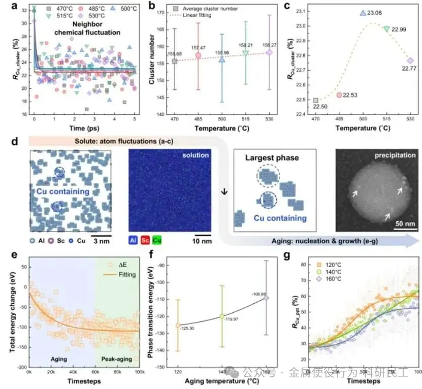 - 动力学导航:利用上述MLIP与动力学模拟,精确绘制该亚稳相在温度-时间空间中的“形成地图”,寻找到能最大化其数量密度和Cu掺杂量的工艺窗口(500°C固溶 + 120°C时效)。