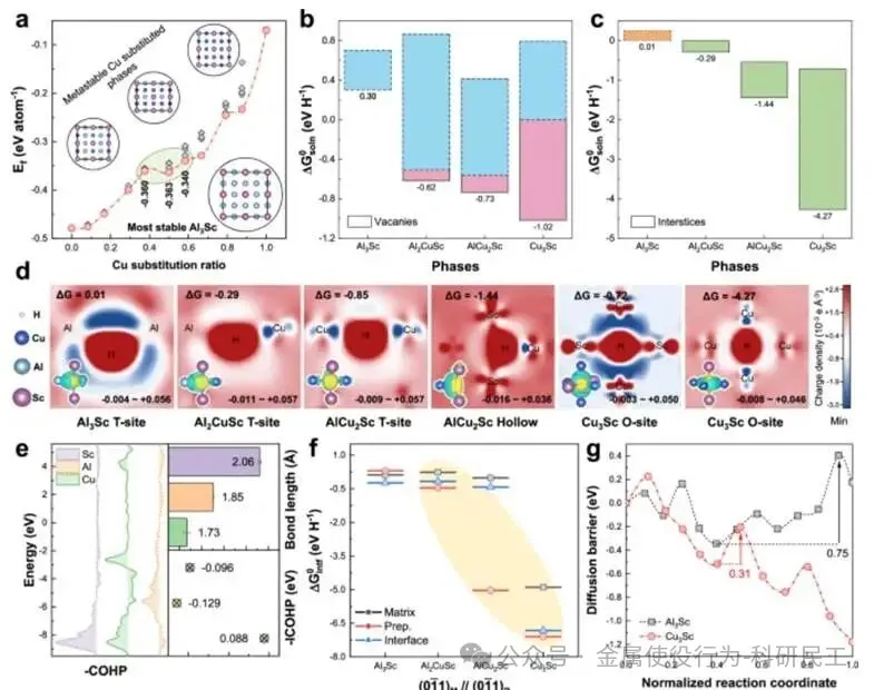 图2:铜掺杂Al₃Sc析出相氢捕获能力的DFT计算结果