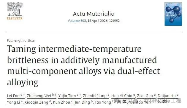 顶刊《Acta Materialia》:突破增材制造多组元合金中温脆性难题!