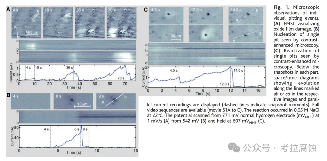 为了区分不同方法,需要点蚀腐蚀发作的微观原位可视化。以往已使用几种实验方法调查不锈钢上的点蚀。