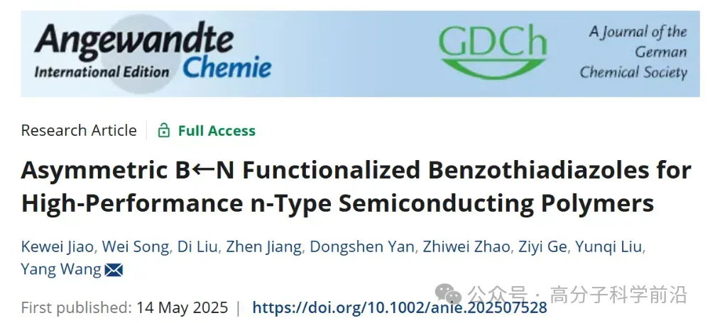 复旦大学刘云圻院士、王洋团队/宁波材料所葛子义《Angew》:基于不对称B←N功能化苯并噻二唑的高性能n型聚合物半导体
