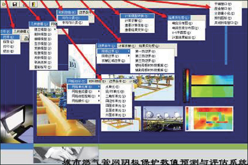 笔者带领研究团队围绕燃气管网阴极保护数值预测与优化技术开展了系统研究。综合考虑阴极保护系统的电子通路、离子通路及将二者联系起来的界面极化特性,并针对环境介质的不均匀性,建立了燃气管网阴极保护电位分布数学模型。结合电化学极化理论和实验测试,研究确定了数值模拟计算所需的边界条件。根据燃气管网阴极保护特点和边界元计算原理开发了可进行三维问题求解的边界元计算程序。在数学模型和数值计算方法研究的基础上,开发了城市燃气管网阴极保护数值预测与评估软件,主界面如图1