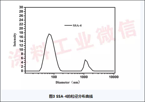 从图中可以观察到粒径约100nm的SiO2颗粒出现明显的团聚现象,最终形成SiO2的颗粒网络,SSA-4的透射电镜图的结果与粒径分布曲线结果一致,也进一步验证了KH-550与KH-603对二氧化硅溶胶的团聚作用,从而构建了微观尺度的粗糙结构。