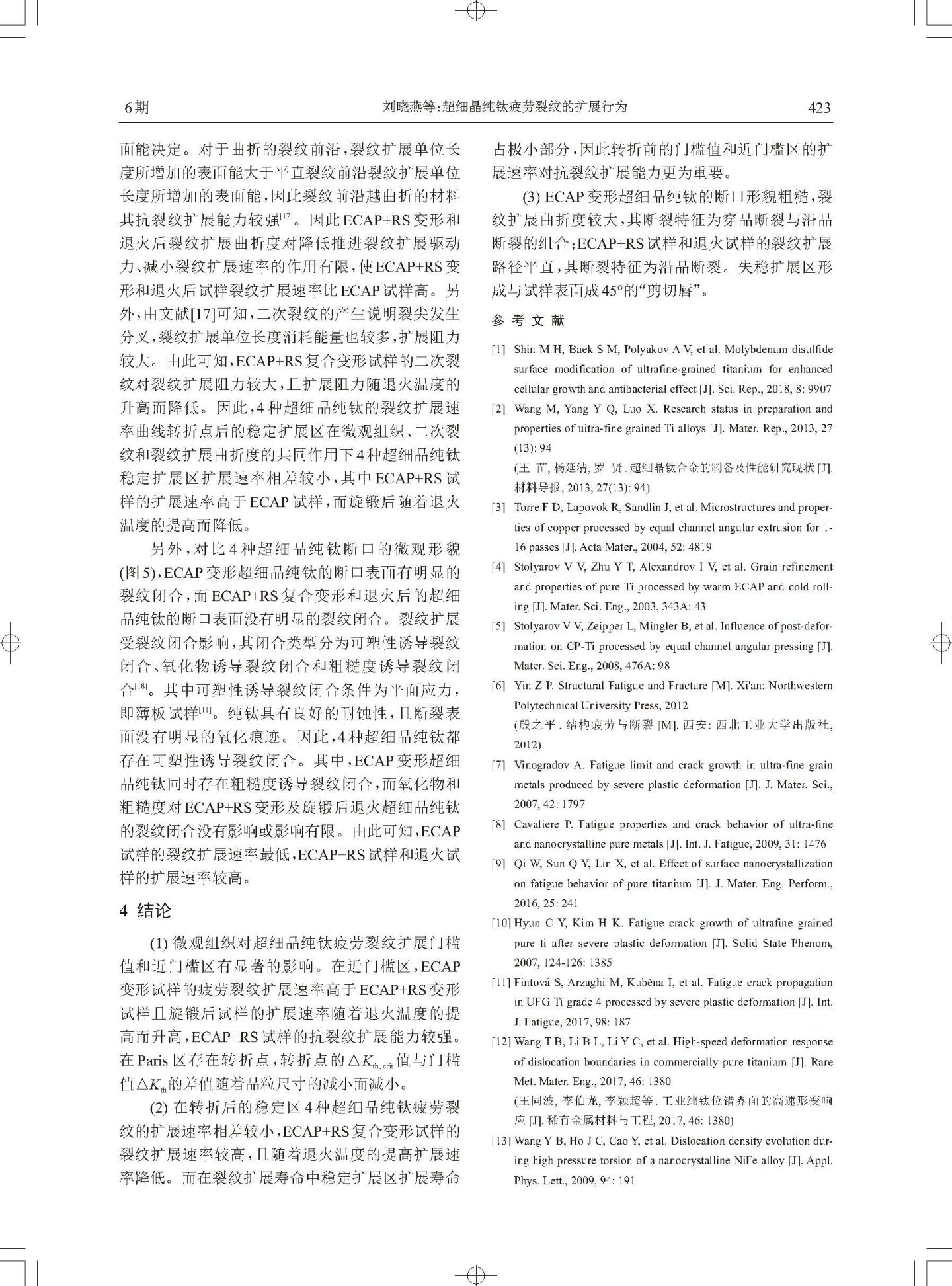 超细晶纯钛疲劳裂纹的扩展行为