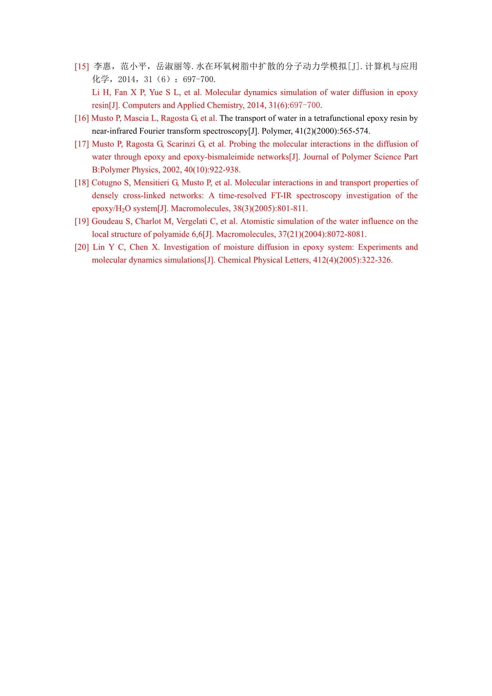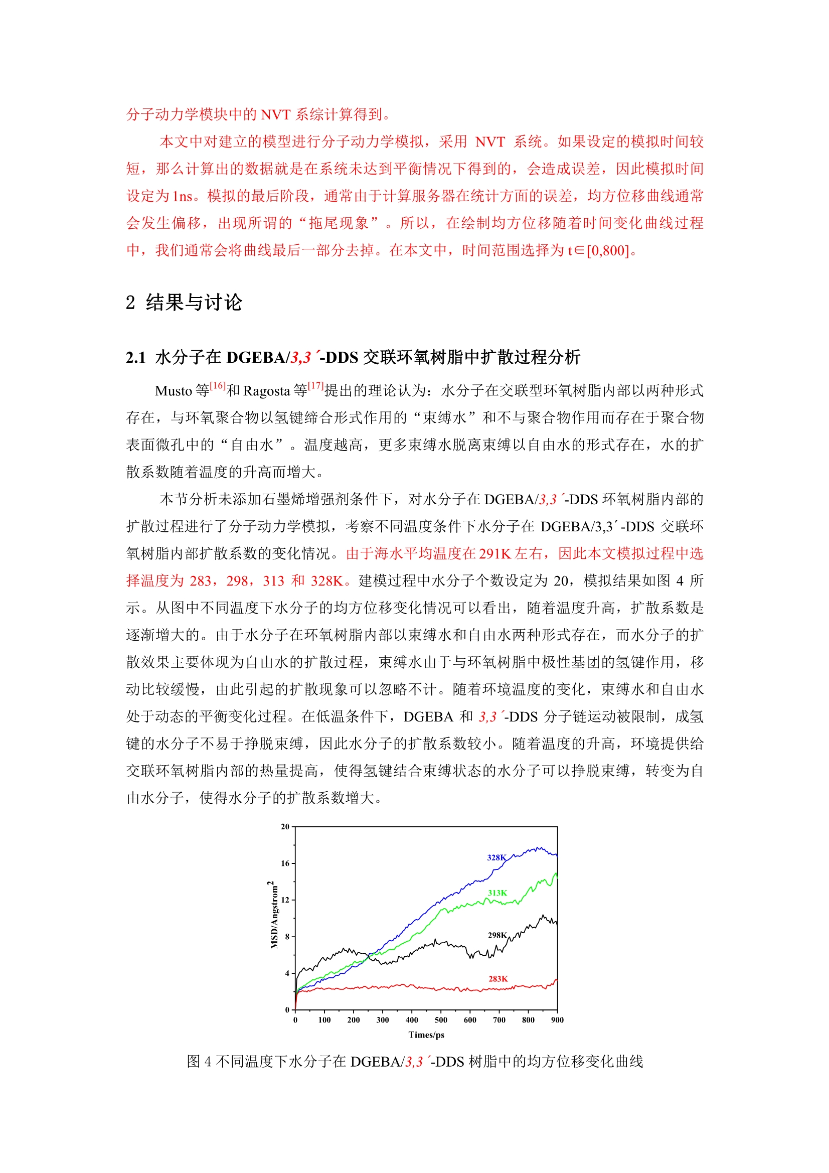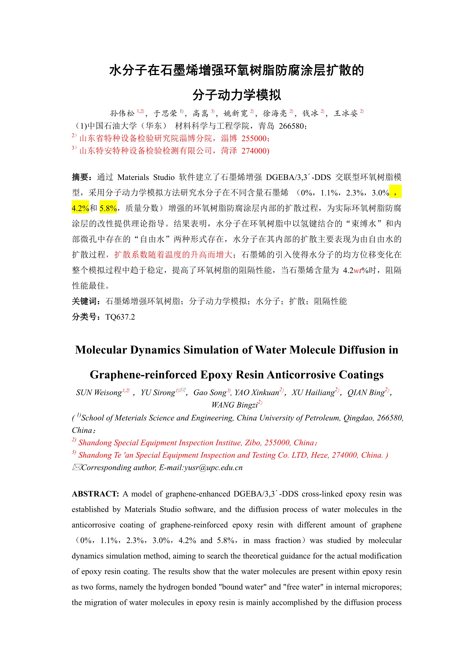 水分子在石墨烯增强环氧树脂防腐涂层扩散的分子动力学模拟