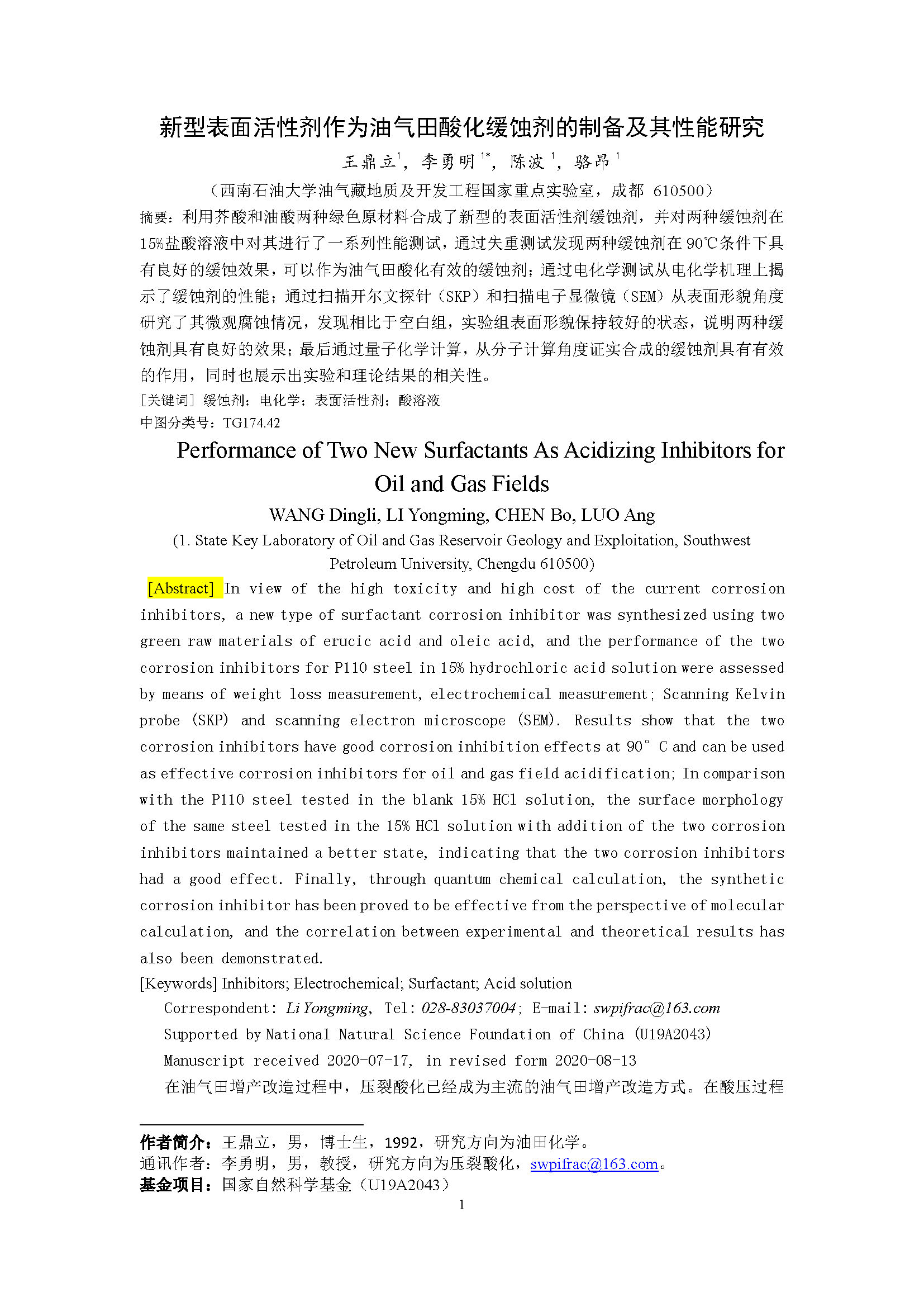 2021-04-02 16:36:45 作者:王鼎立,李勇明,陈波,骆昂 来源:中国腐蚀与防护学报 分享至:
