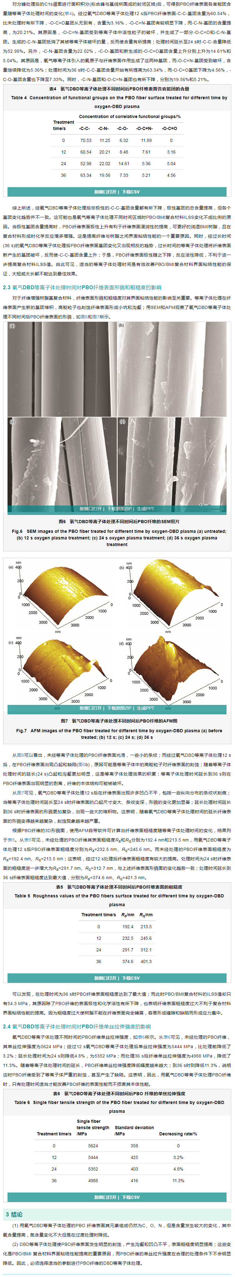 关键词: 材料表面与界面 ; DBD等离子体 ; PBO纤维 ; 表面形貌 ; 化学成分 ; 界面粘结强度