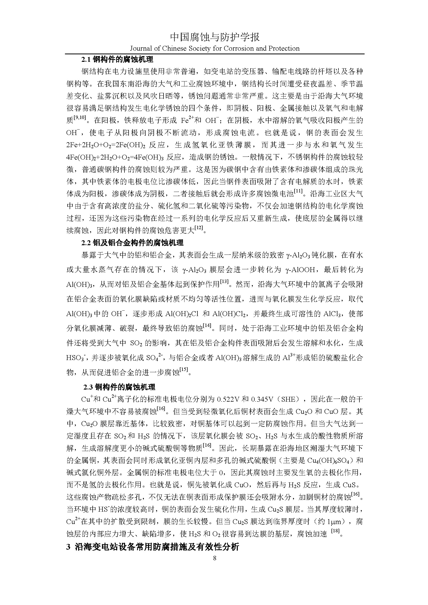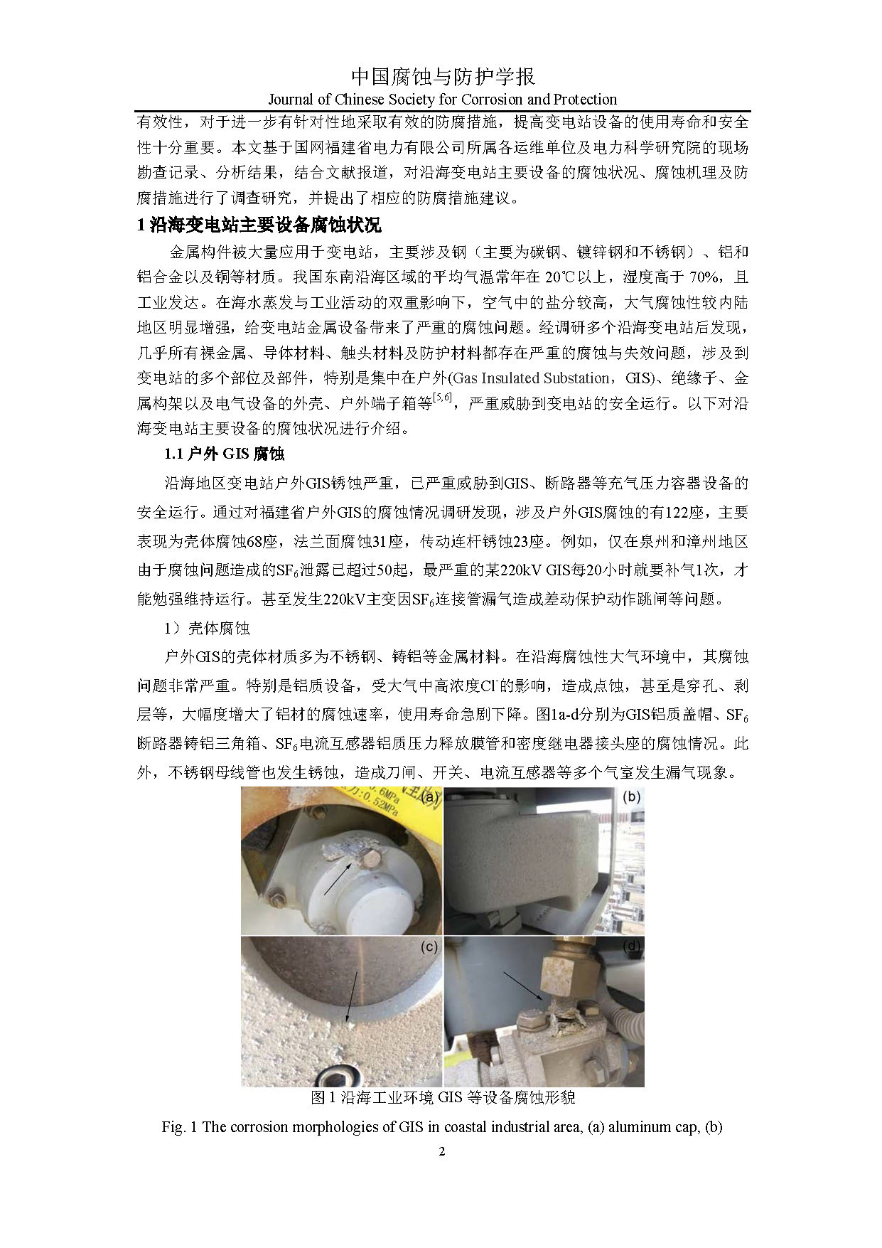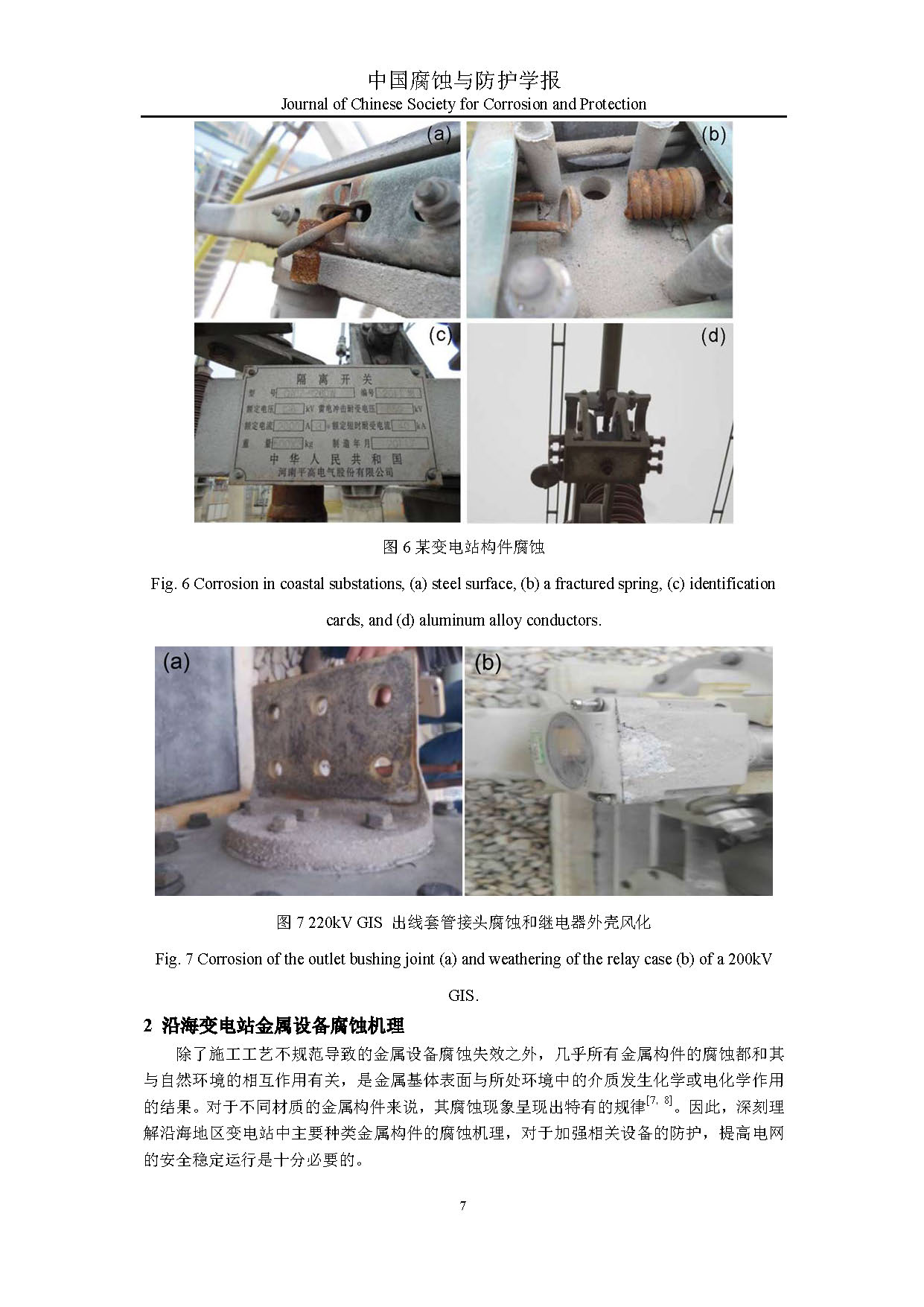 沿海变电站设备腐蚀状况及其腐蚀机理与防护