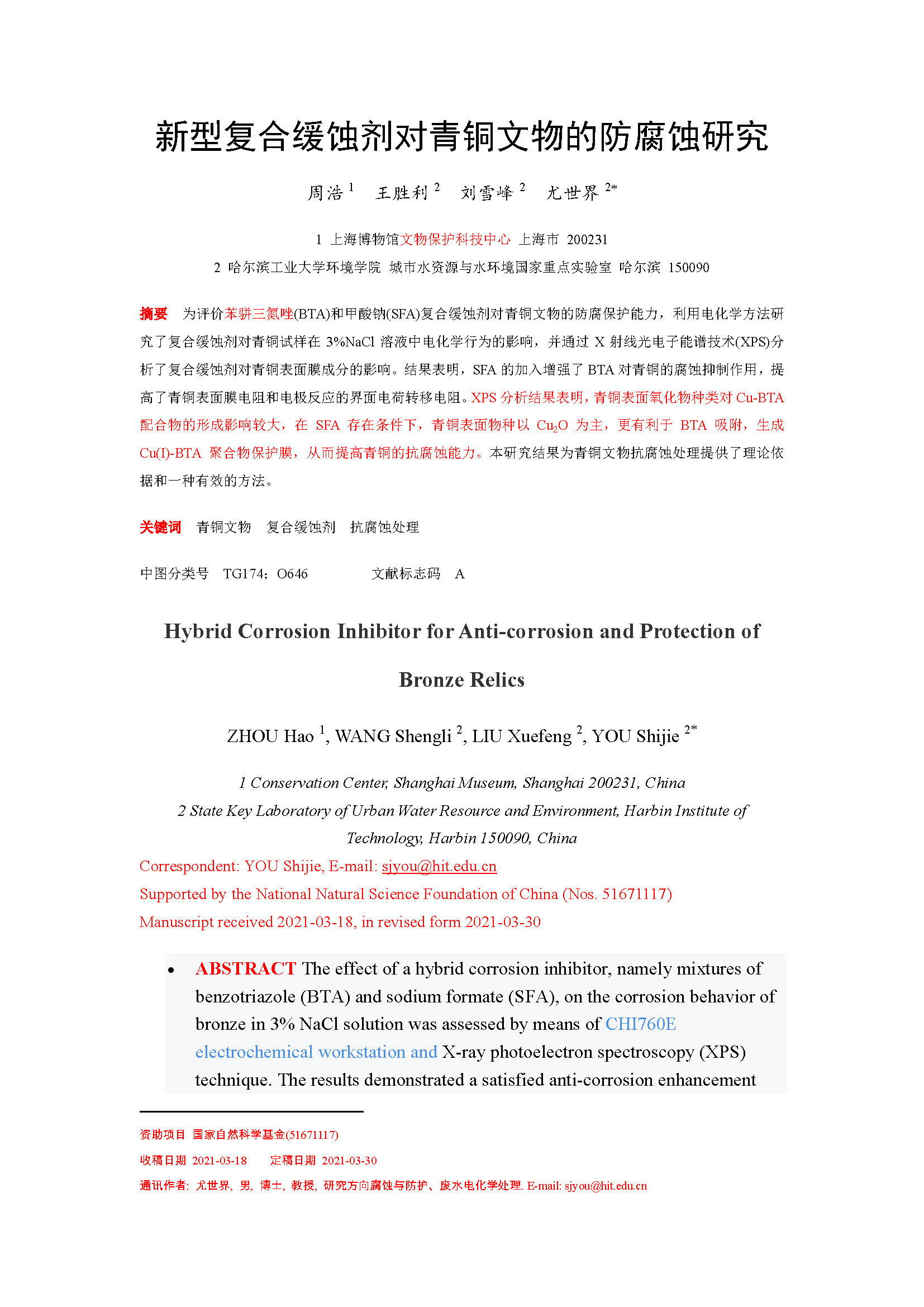 2021-05-24 16:51:26 作者:周浩 来源:中国腐蚀与防护学报 分享至: