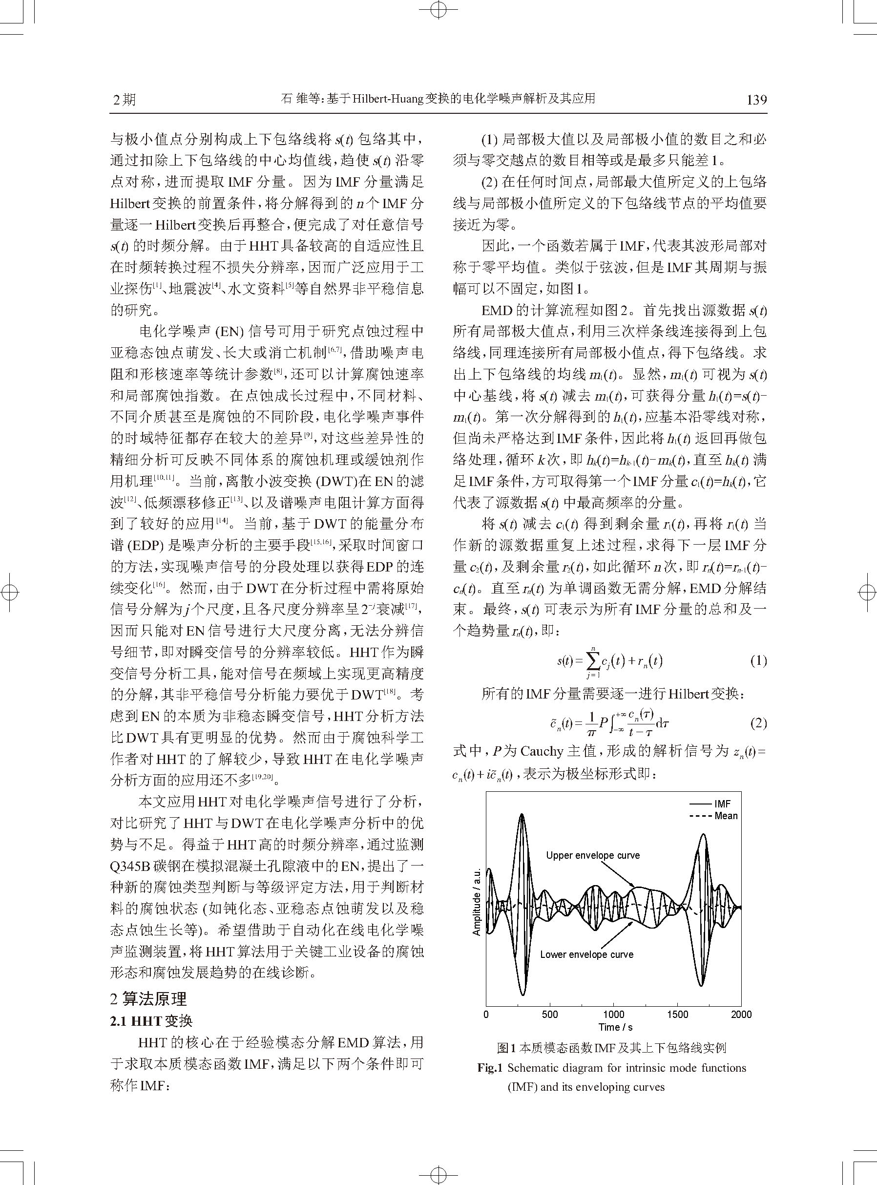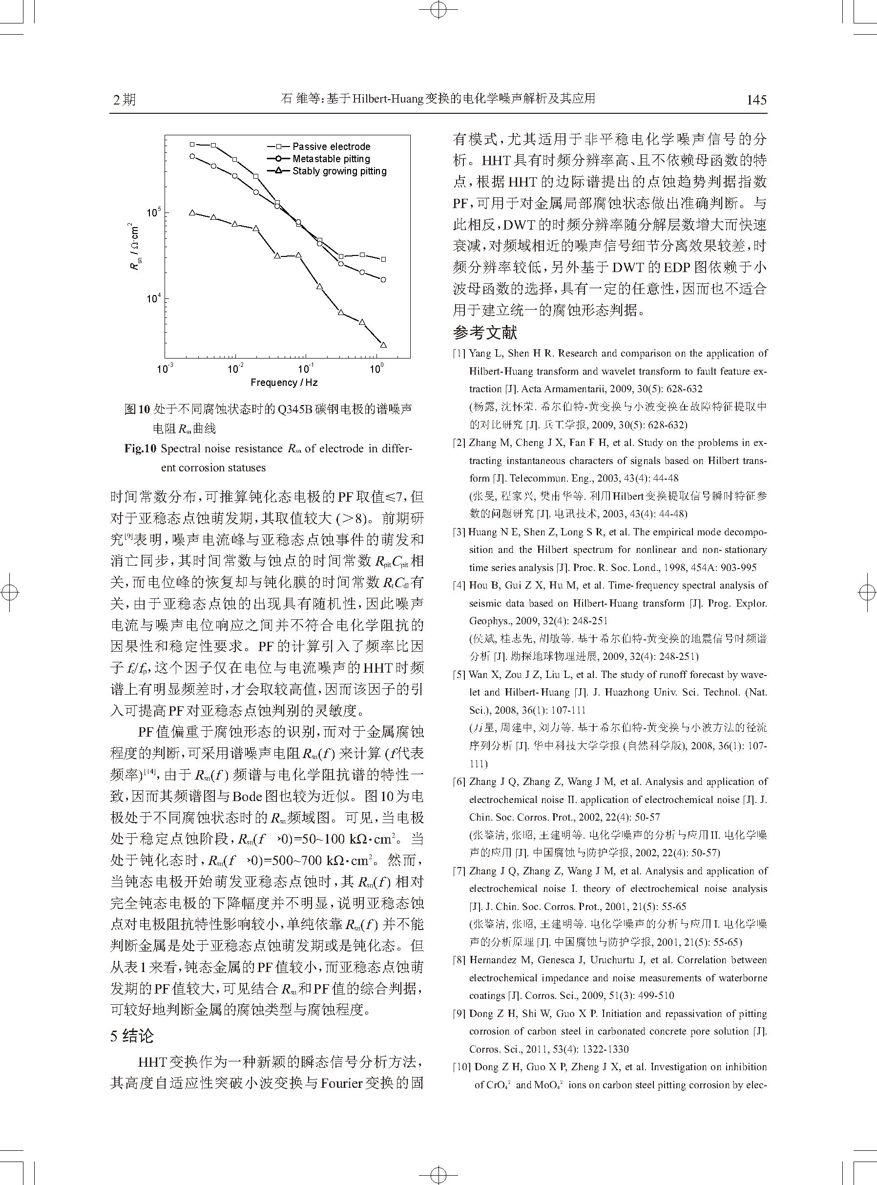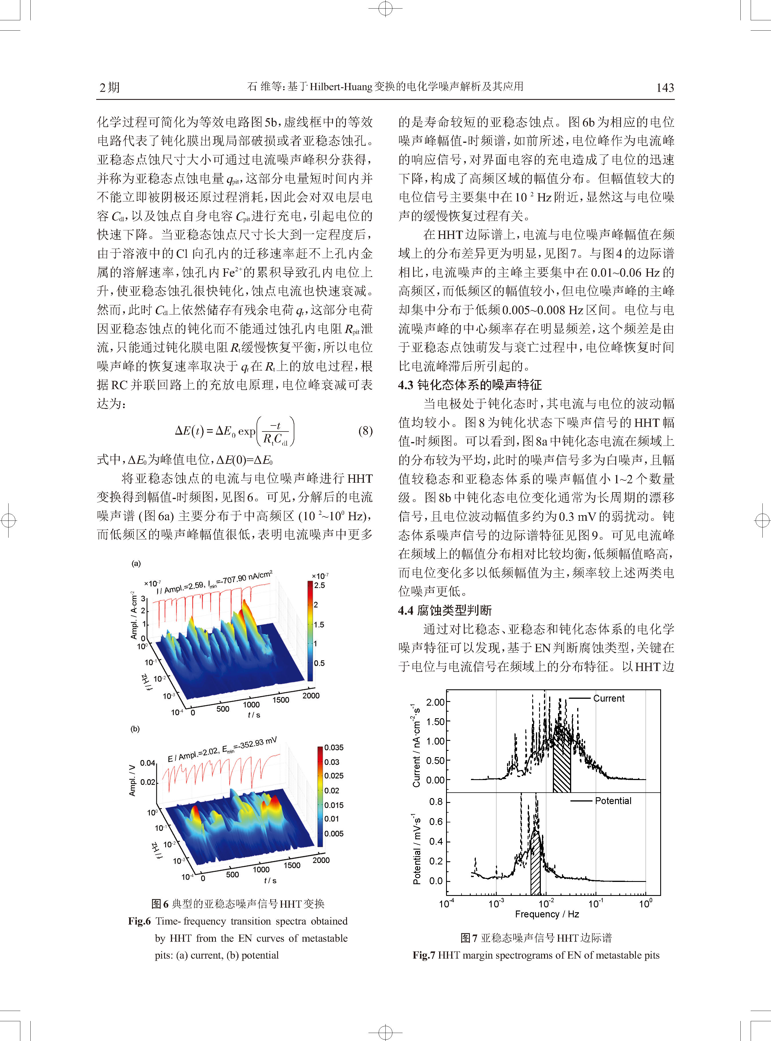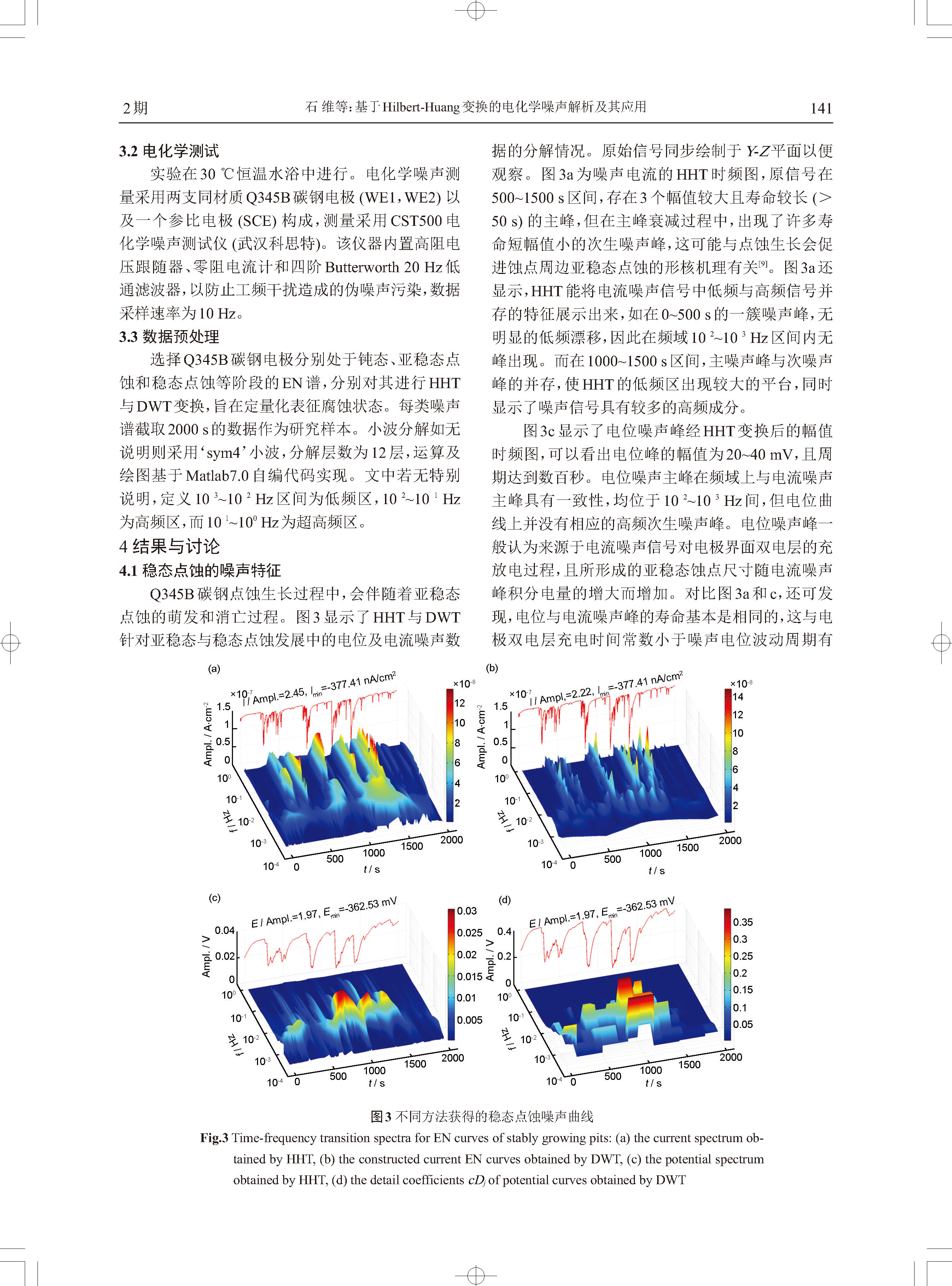 标签: 电化学噪声, 点蚀, Hilbert-Huang变换, 小波变换