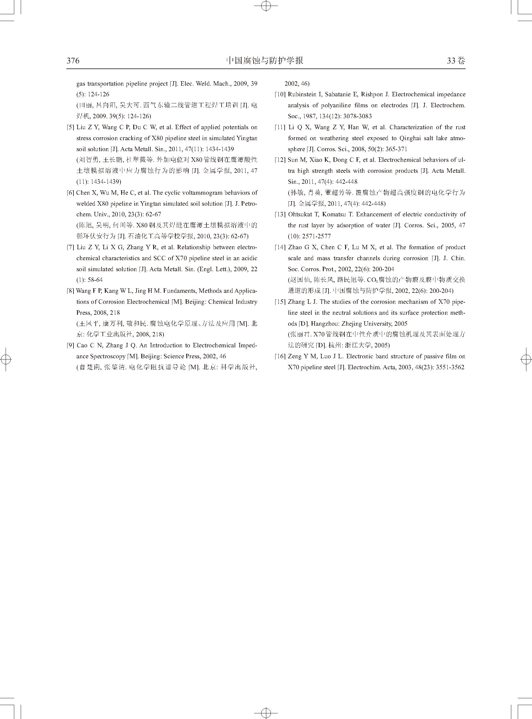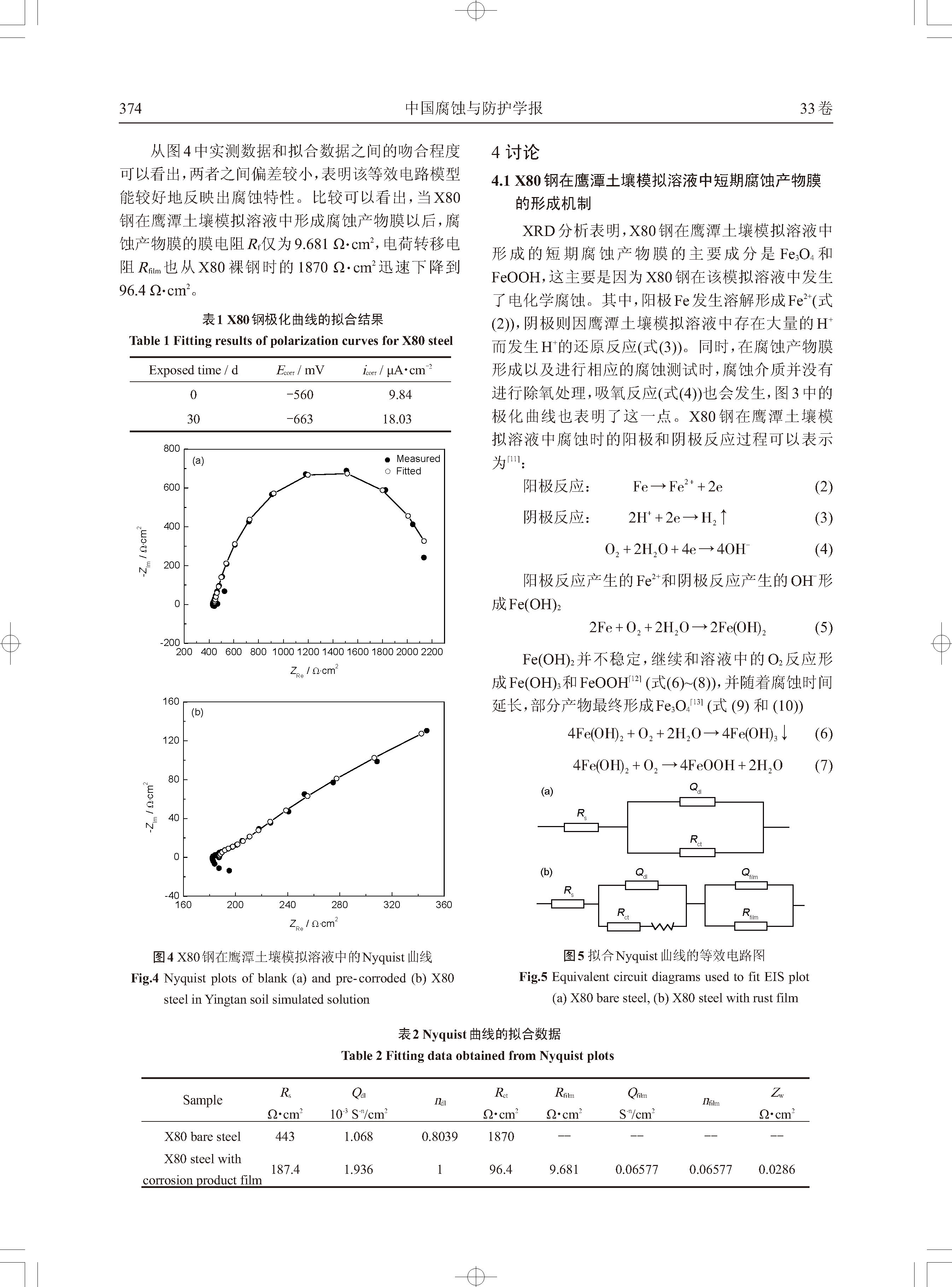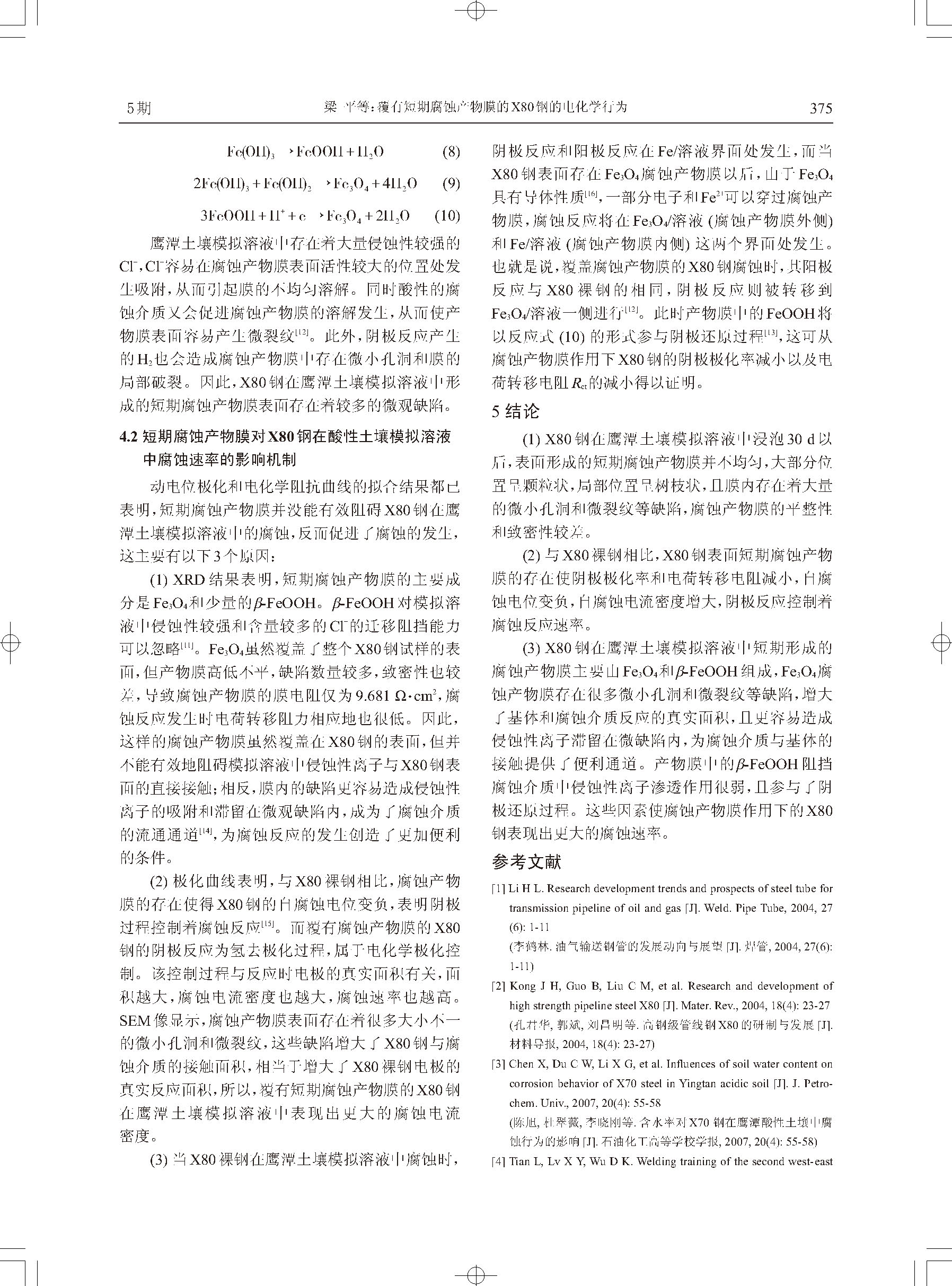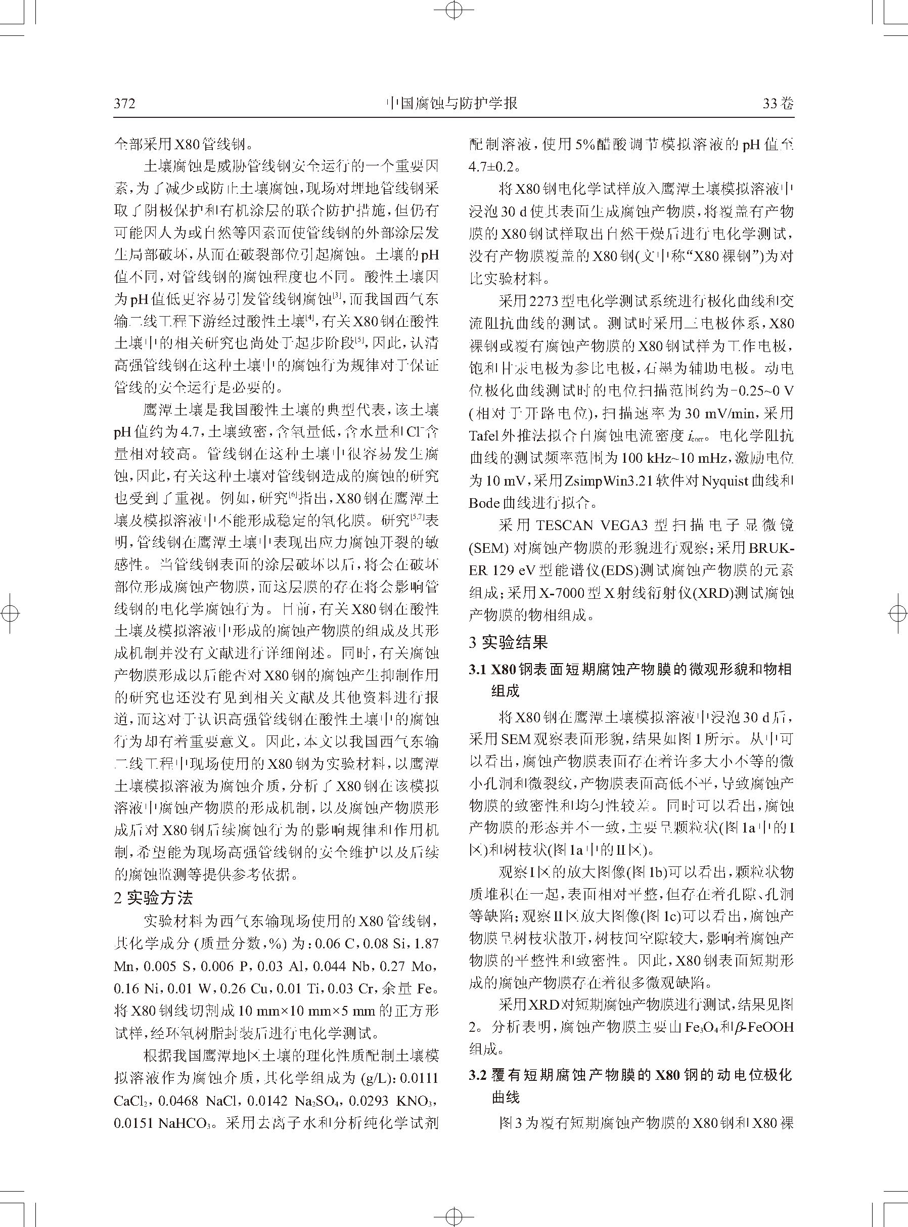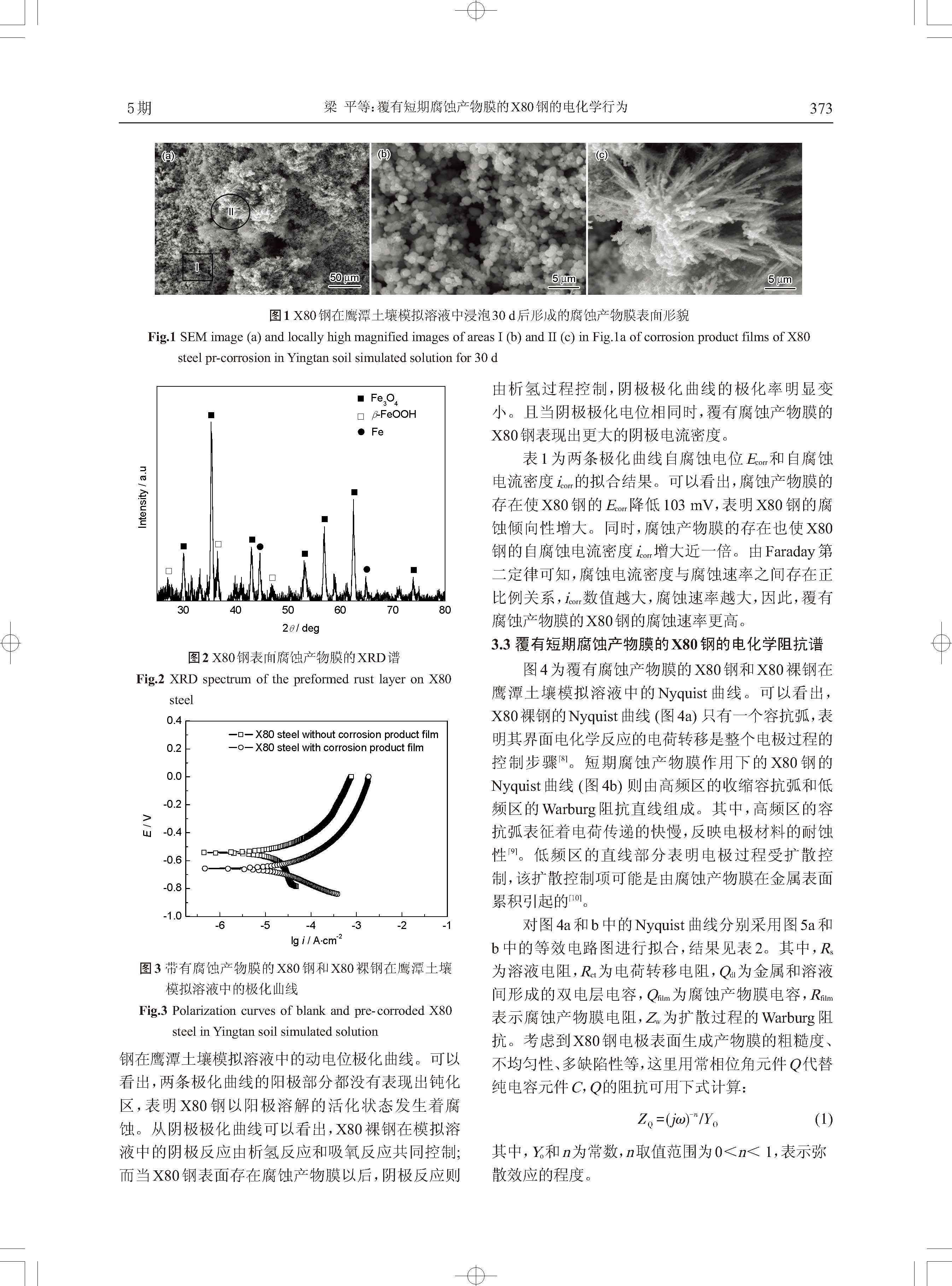 覆有短期腐蚀产物膜的X80钢的电化学行为
