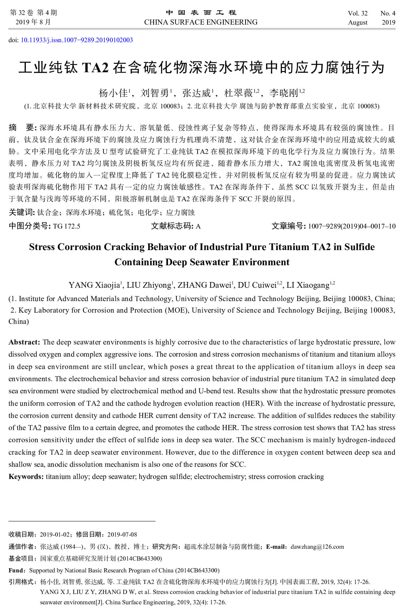 2021-06-28 15:32:35 作者:杨小佳,刘智勇,张达威,杜翠薇,李晓刚 来源:中国表面工程 分享至:
