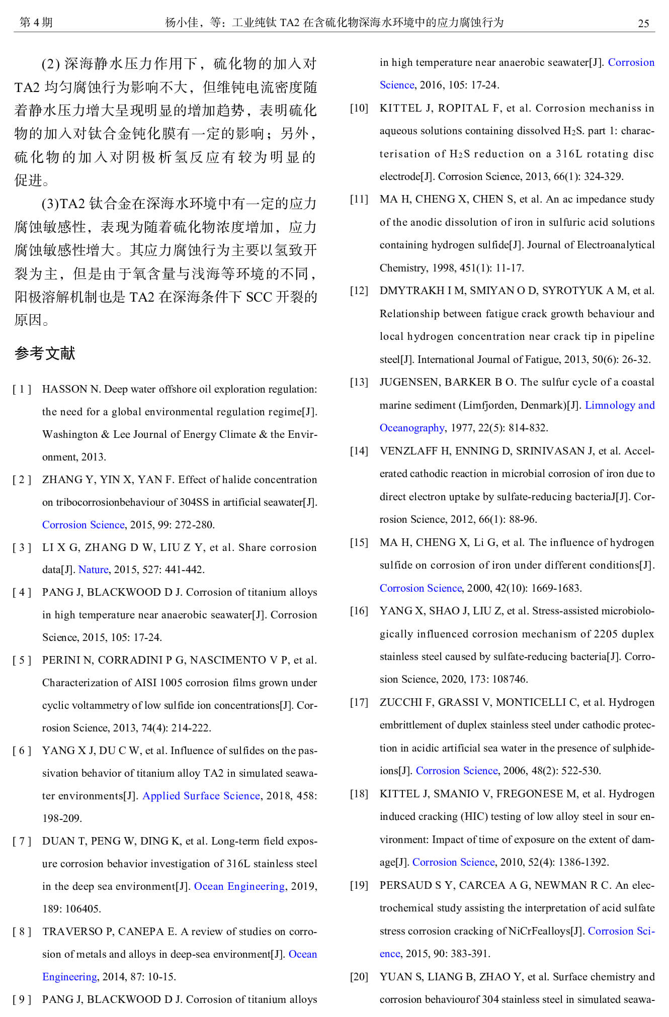 工业纯钛 TA2 在含硫化物深海水环境中的应力腐蚀行为