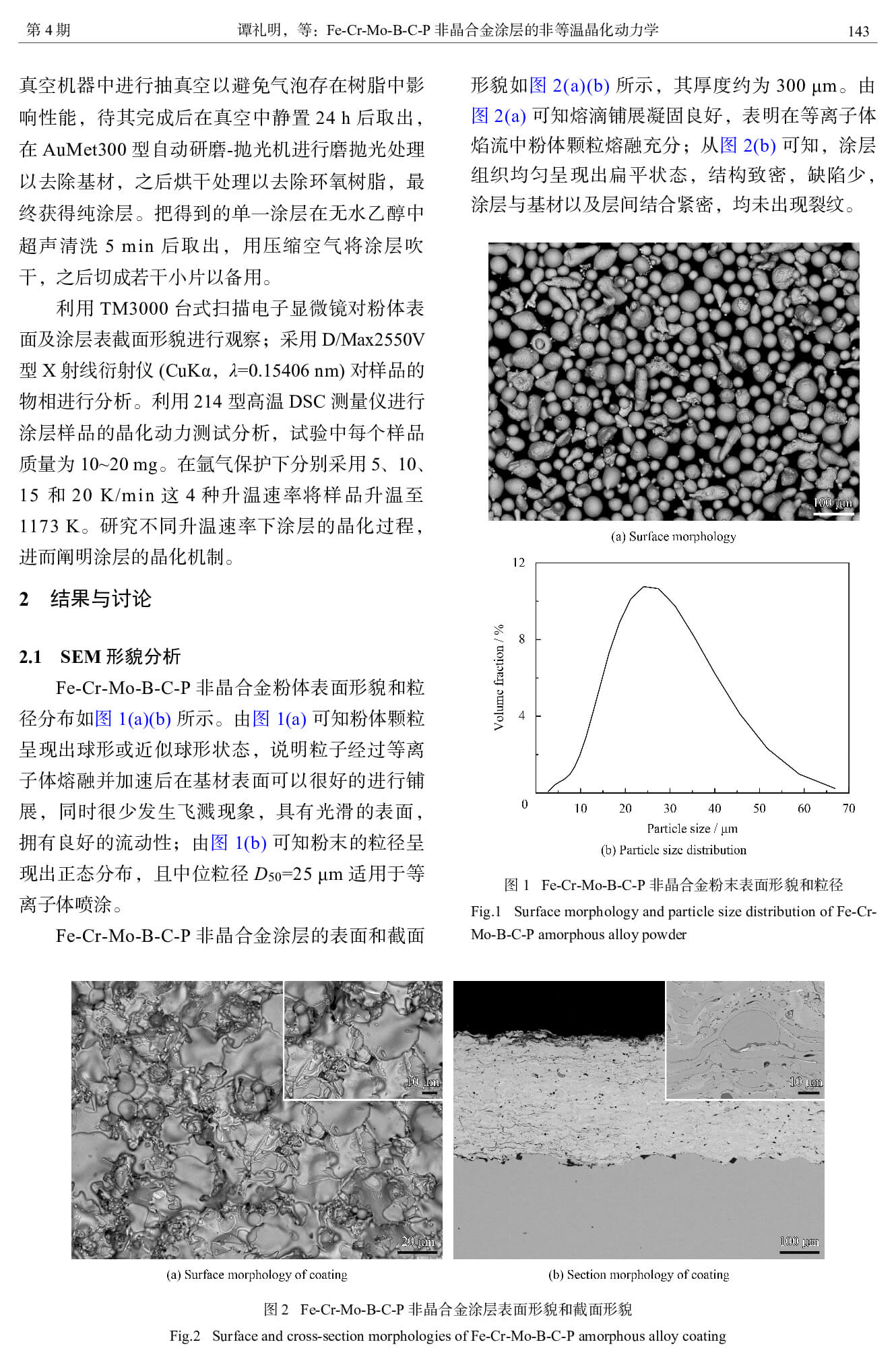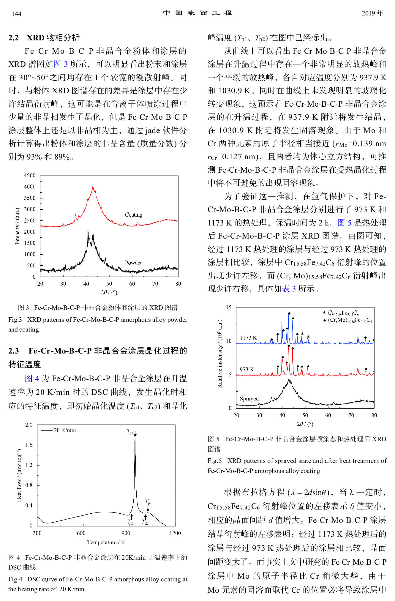Fe-Cr-Mo-B-C-P 非晶合金涂层的非等温晶化动力学