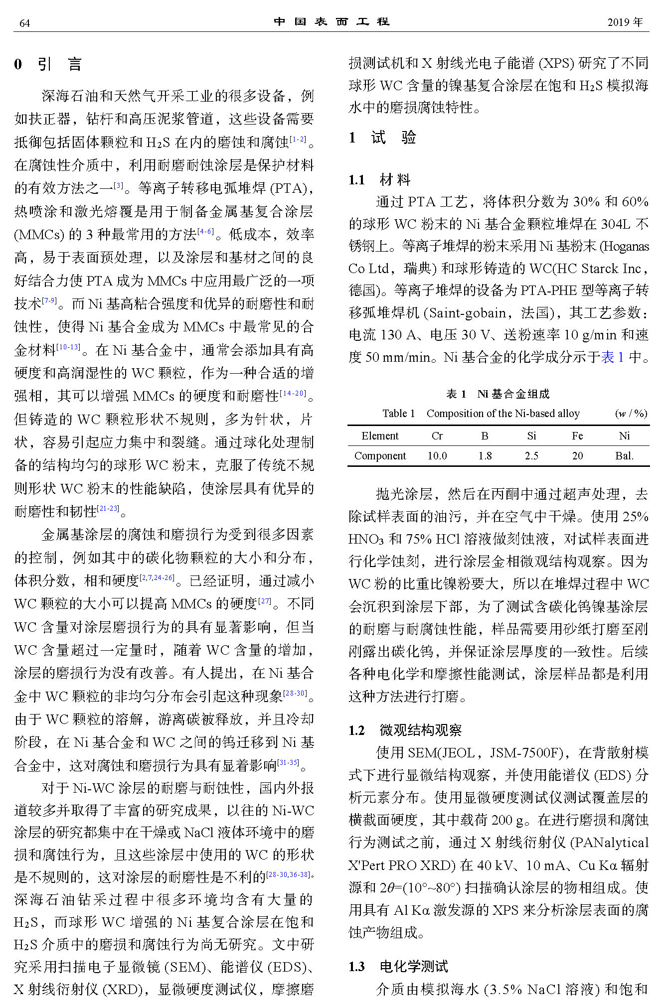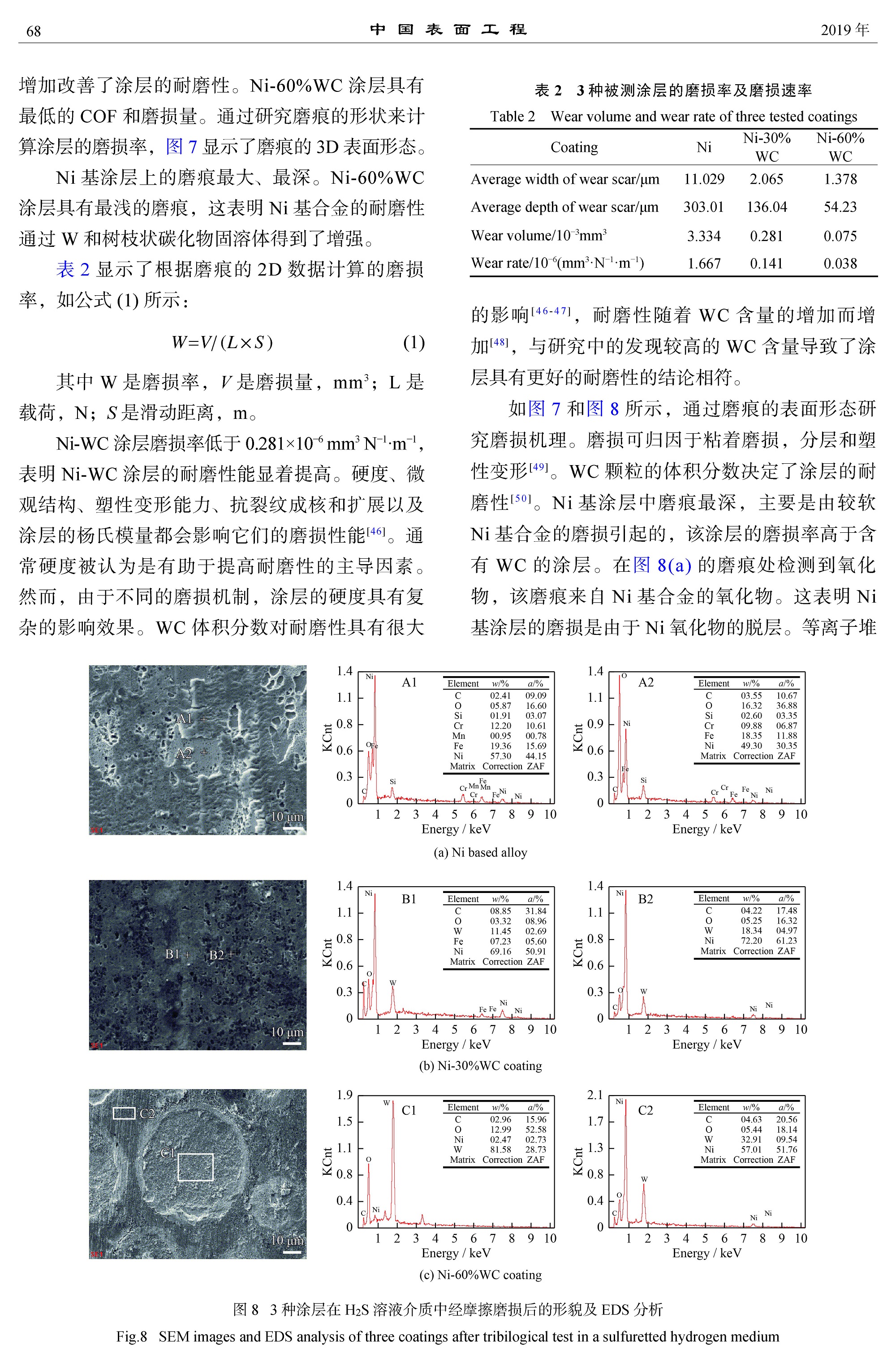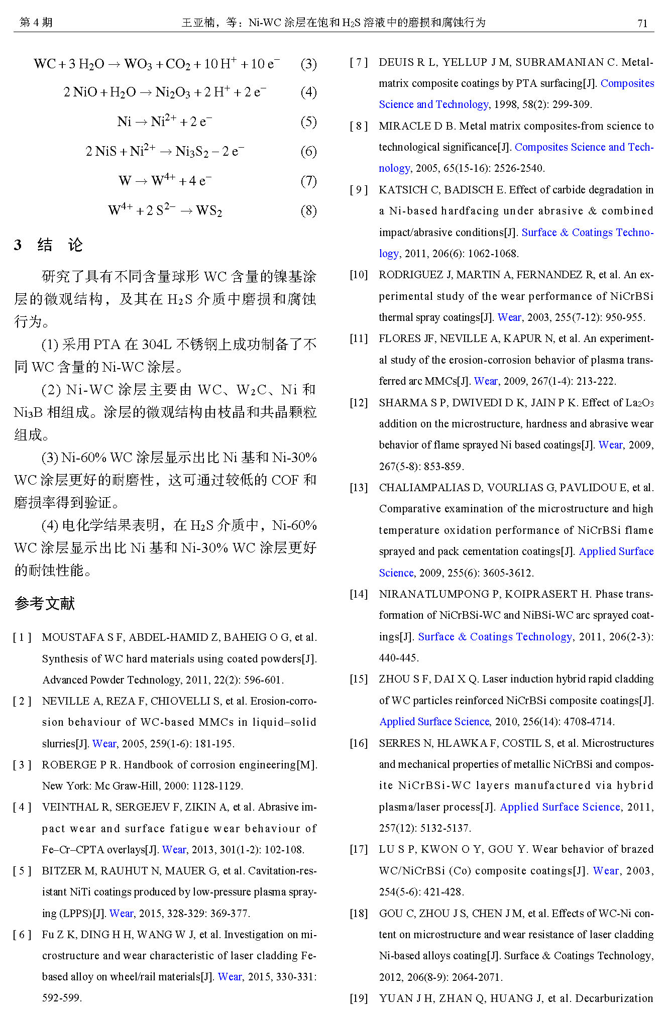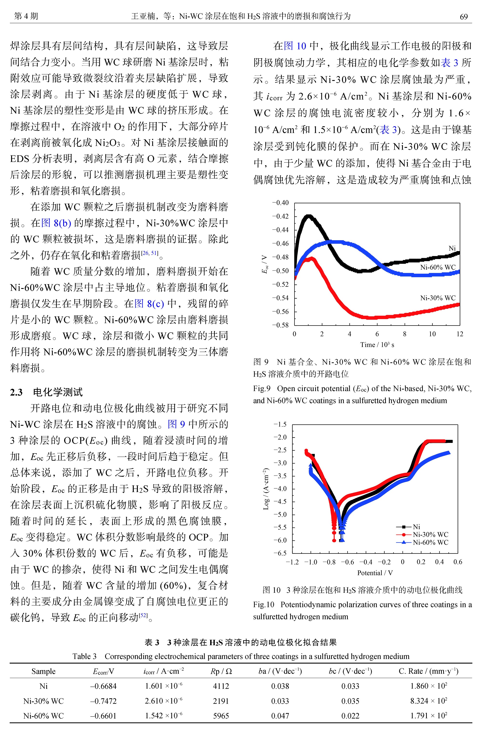 Ni-WC涂层在饱和H2S溶液中的磨损和腐蚀行为