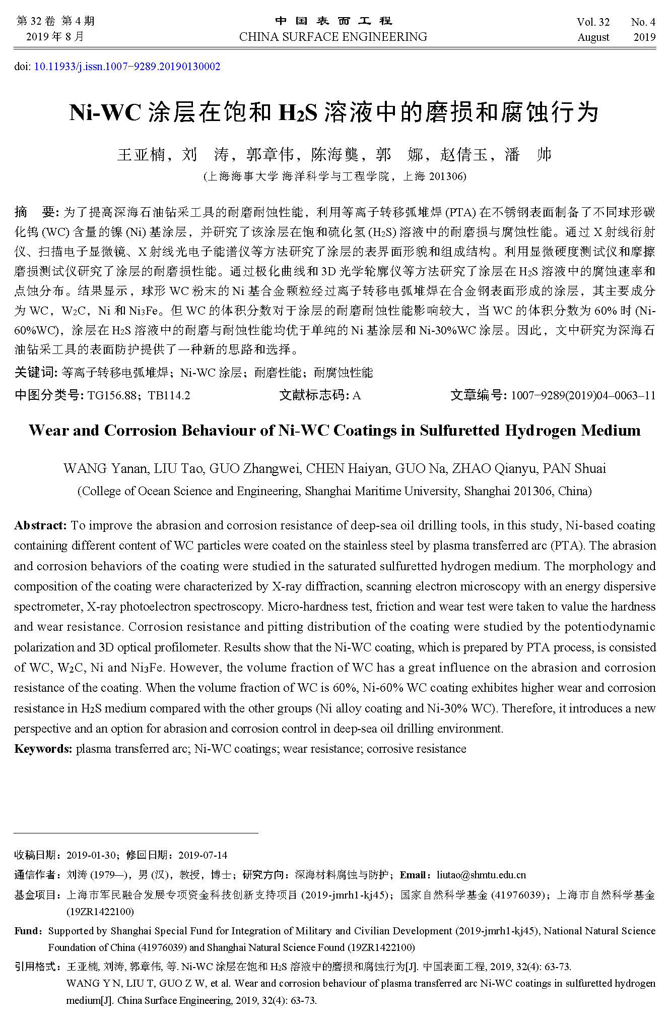 2021-06-29 13:48:36 作者:王亚楠, 刘涛, 郭章伟, 陈海龑, 郭娜, 赵倩玉, 潘帅 来源:中国表面工程 分享至: