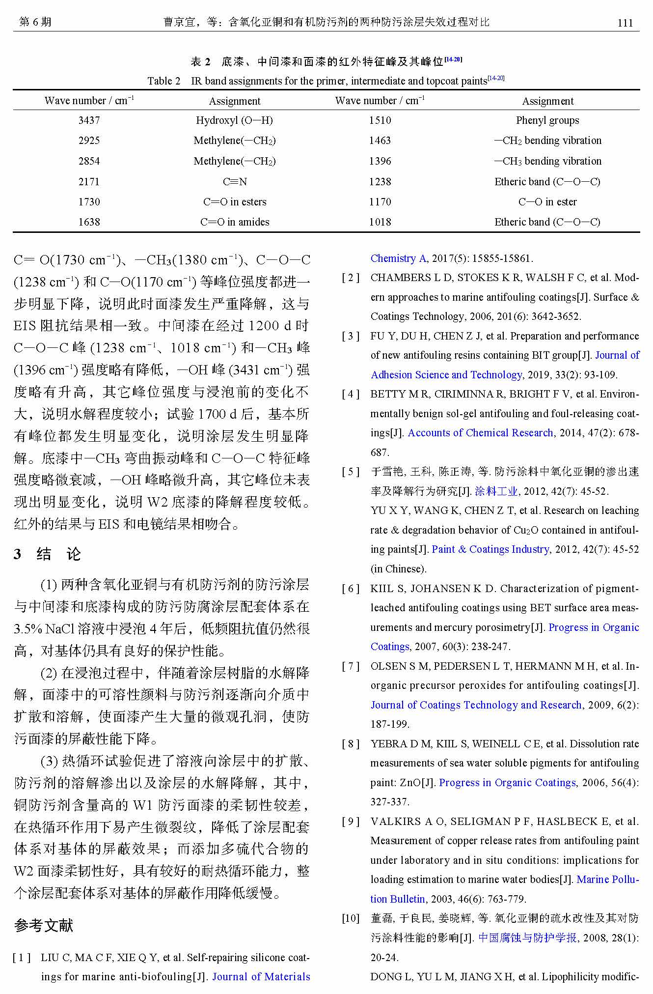 含氧化亚铜和有机防污剂的两种防污涂层失效过程对比
