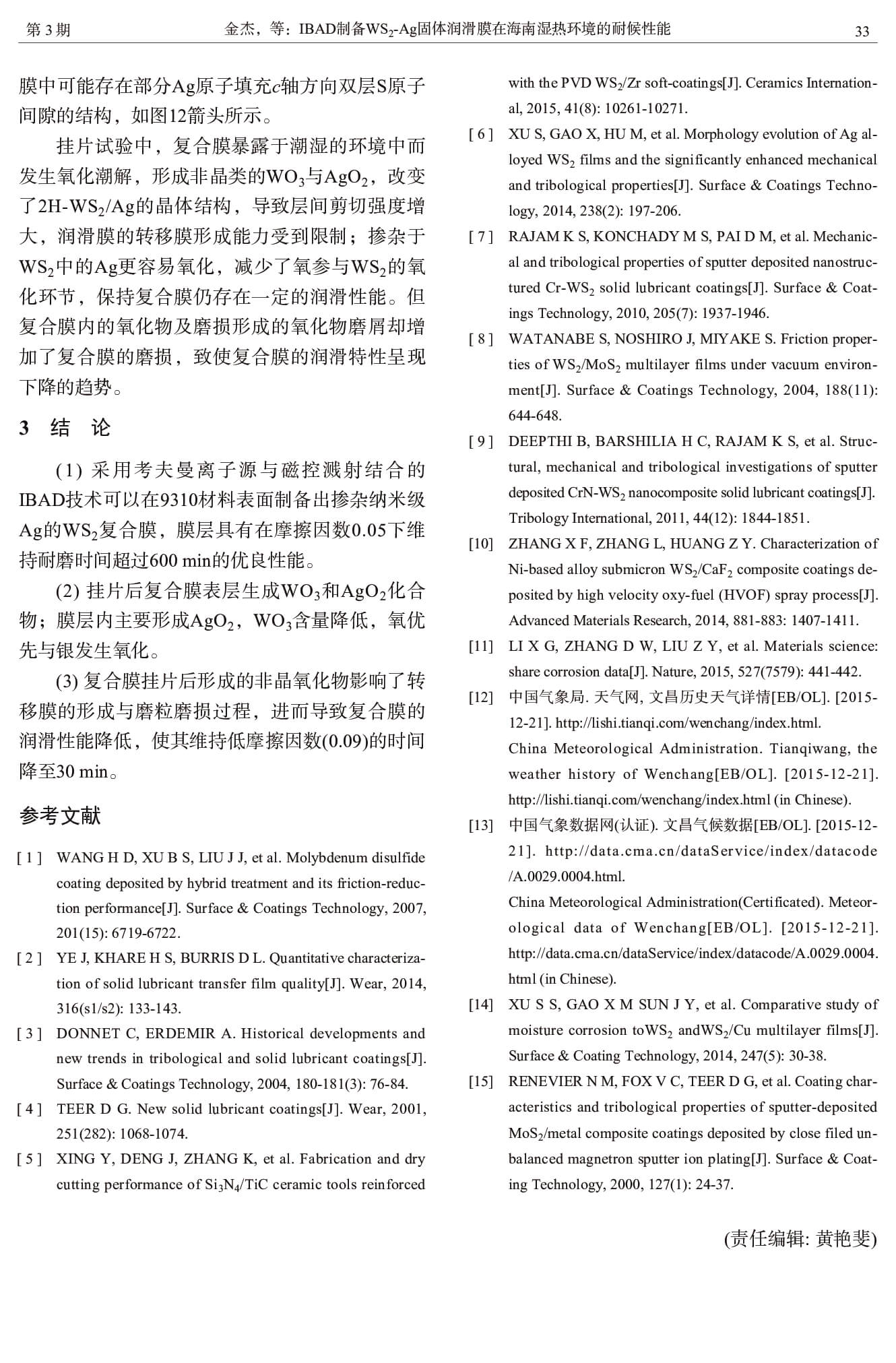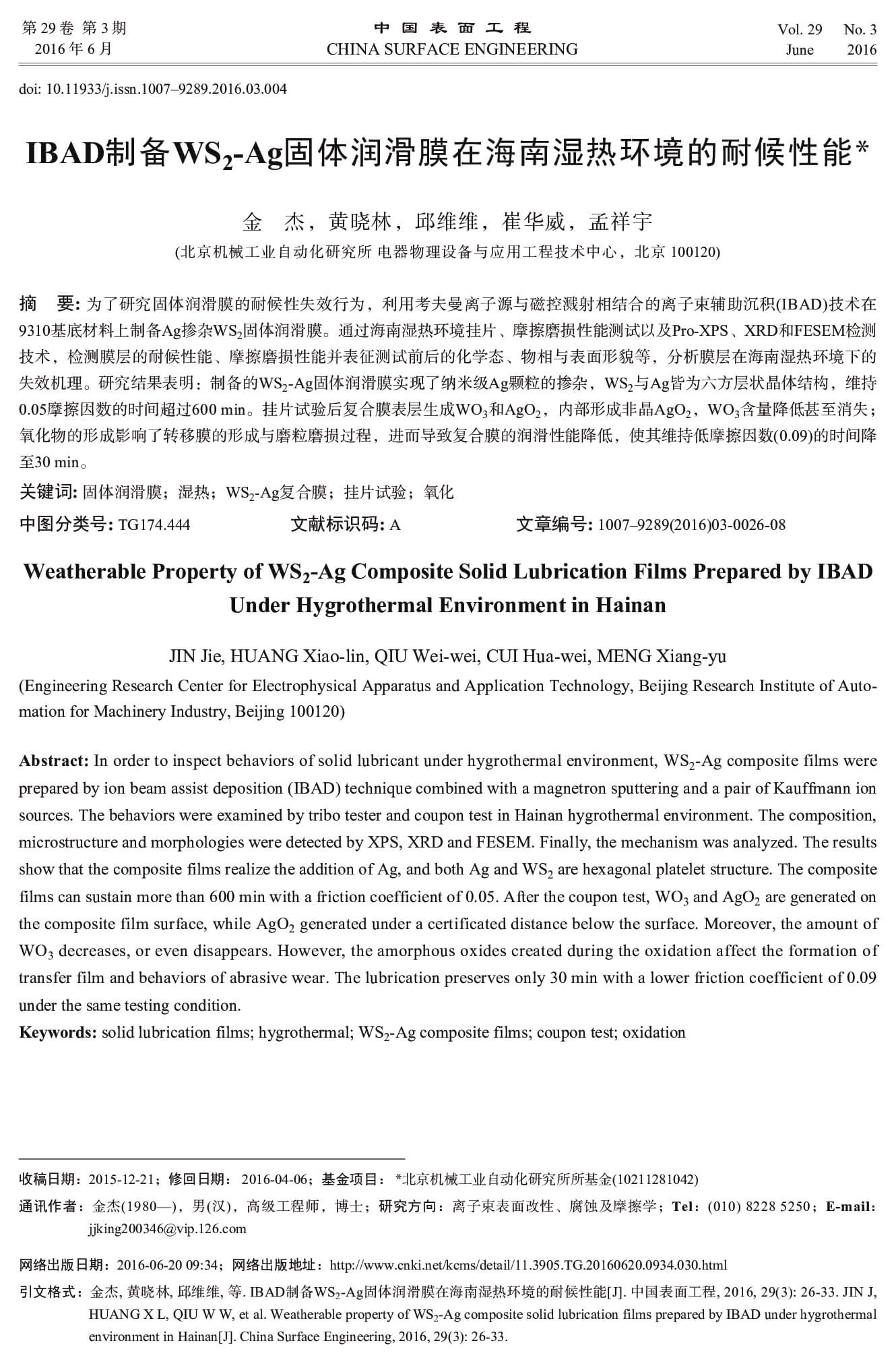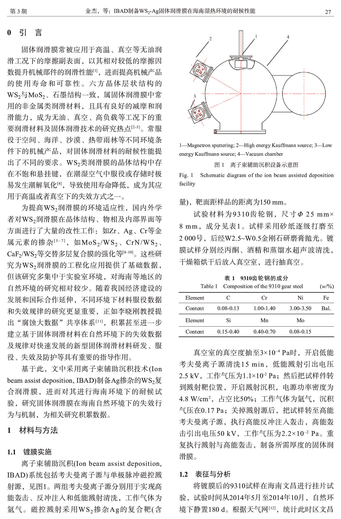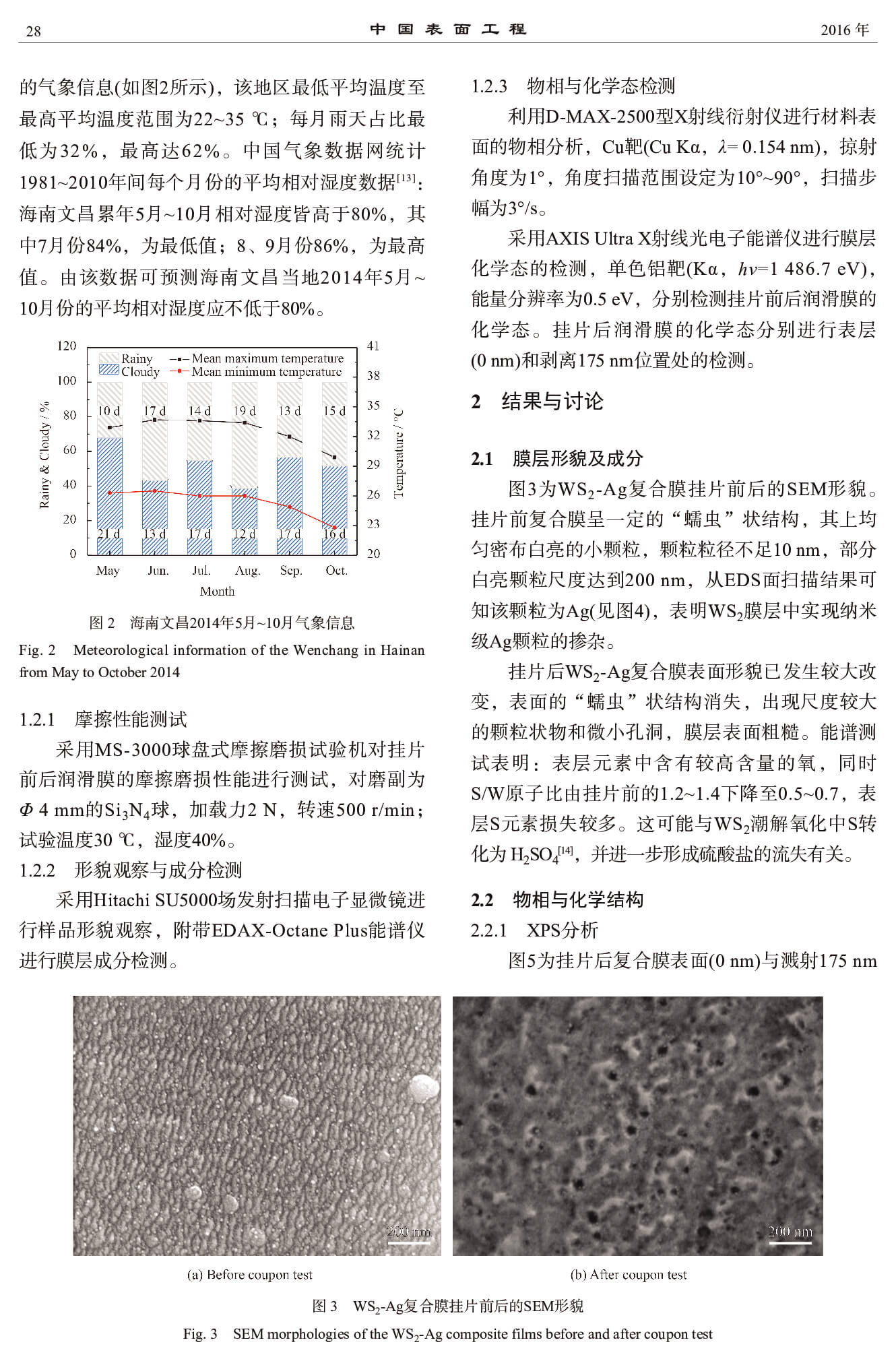 IBAD制备WS2-Ag固体润滑膜在海南湿热环境的耐候性能