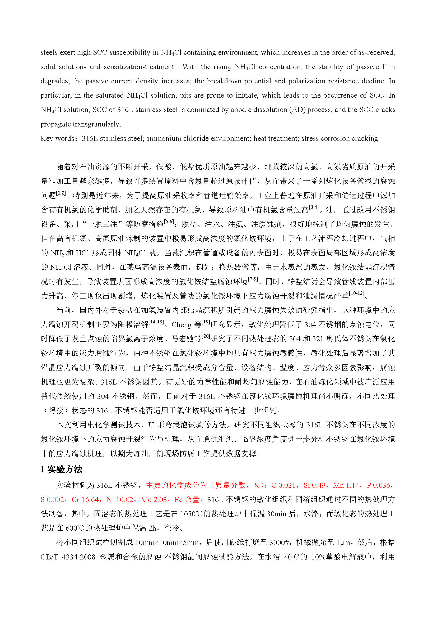 不同组织的316L不锈钢在氯化铵环境下应力腐蚀行为与机理