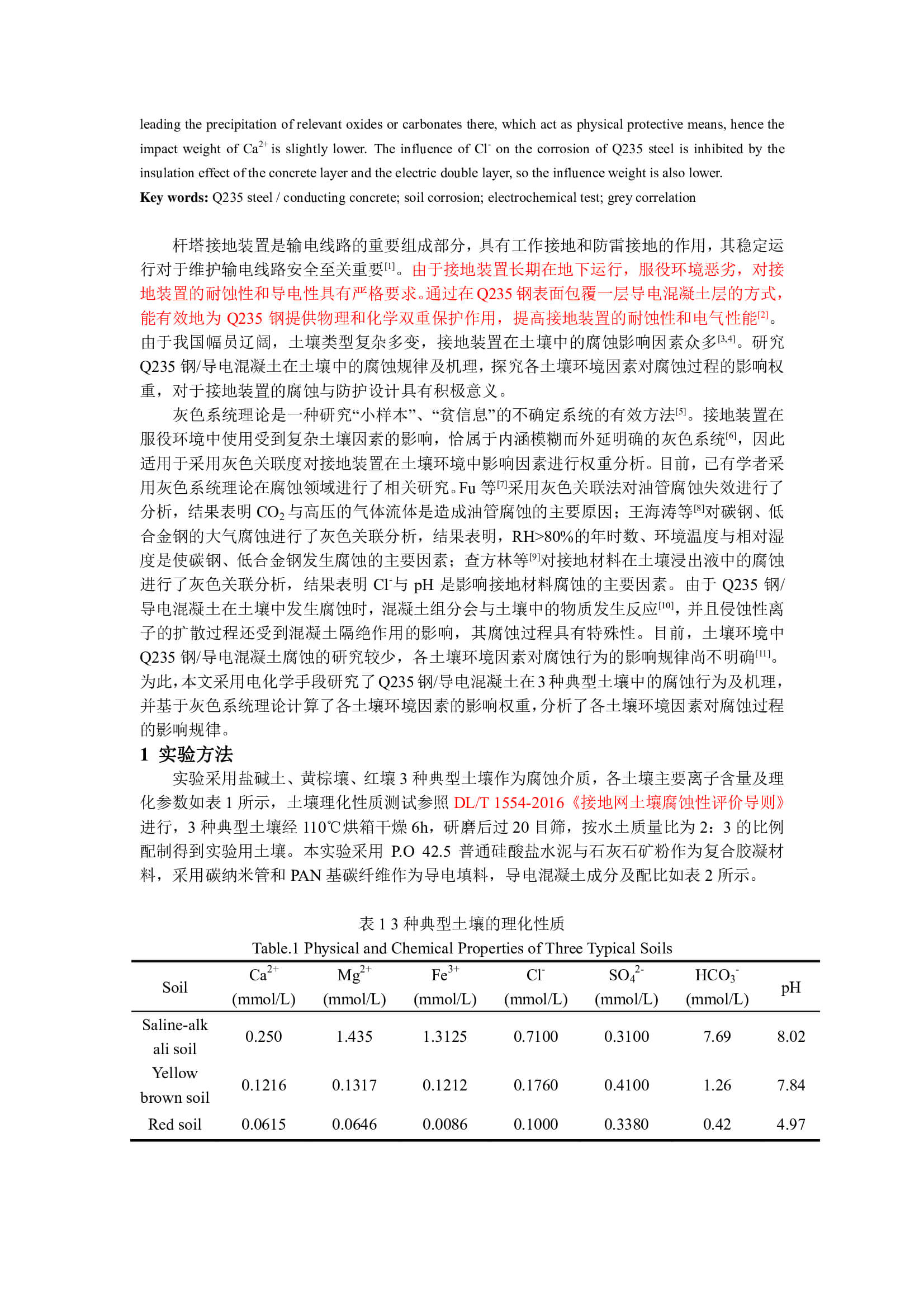 标签: Q235 钢/导电混凝土, 土壤腐蚀, 电化学测试, 灰色关联度