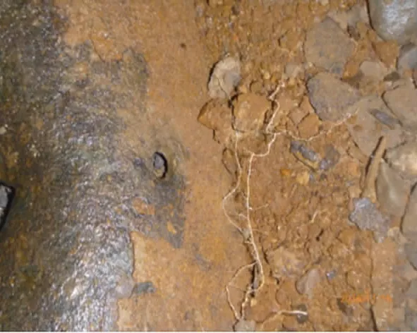 土壤电阻率测量参照了GB/T 21246-2007《埋地钢质管道阴极保护参数测量方法》中土壤电阻率(等距法),采用标准四级法对地表、地表下1m和1.5m深度的土壤电阻率进行测试。结果表明地表土壤电阻率在150Ω·m左右;地表下1m、电极间距1m处土壤电阻率为207~244Ω·m;地表下1.5m、电极间距0.5m处土壤电阻率大于279Ω·m,有些测量值还超出了仪器的量程。随着土壤深度的增加,土壤电阻率也随之增大,库区内深层土壤含水量少,较为干燥,土壤电阻率大。