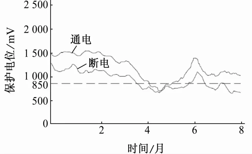 图2 CP-02阴极保护系统通电点处的阴极保护电位