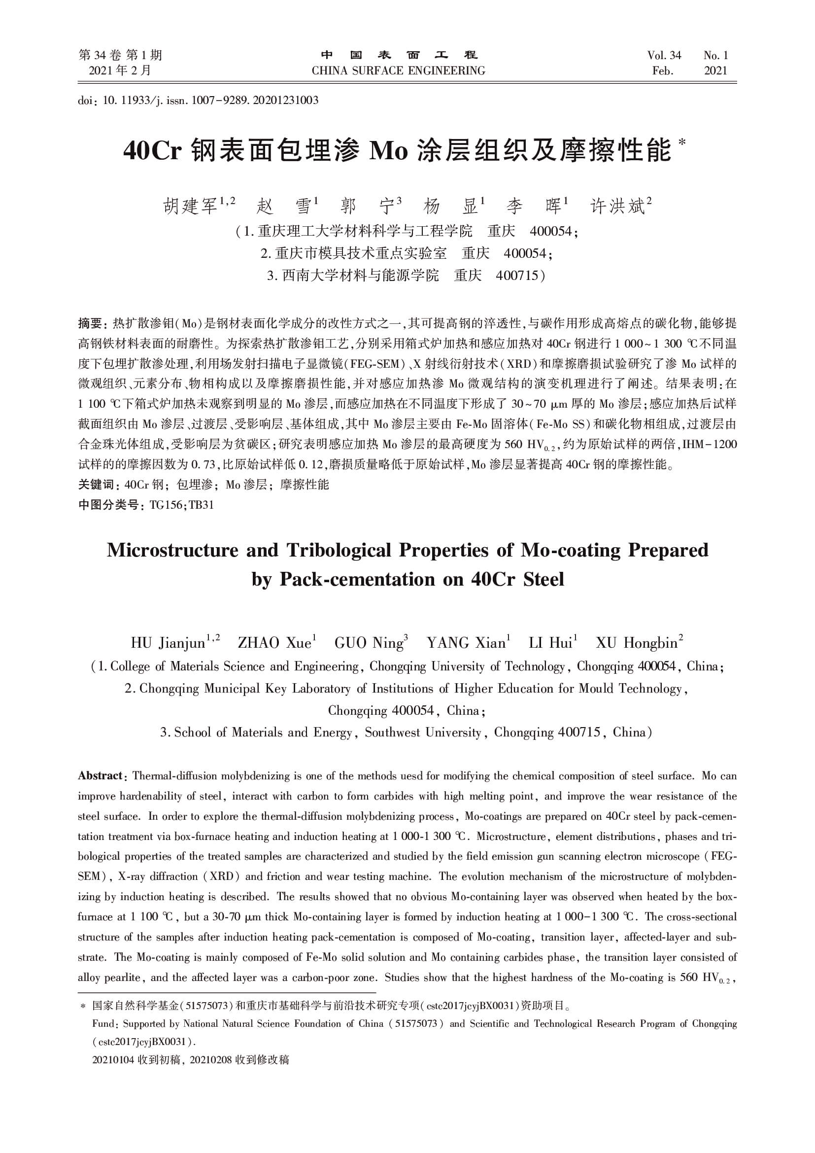 40Cr 钢表面包埋渗 Mo 涂层组织及摩擦性能