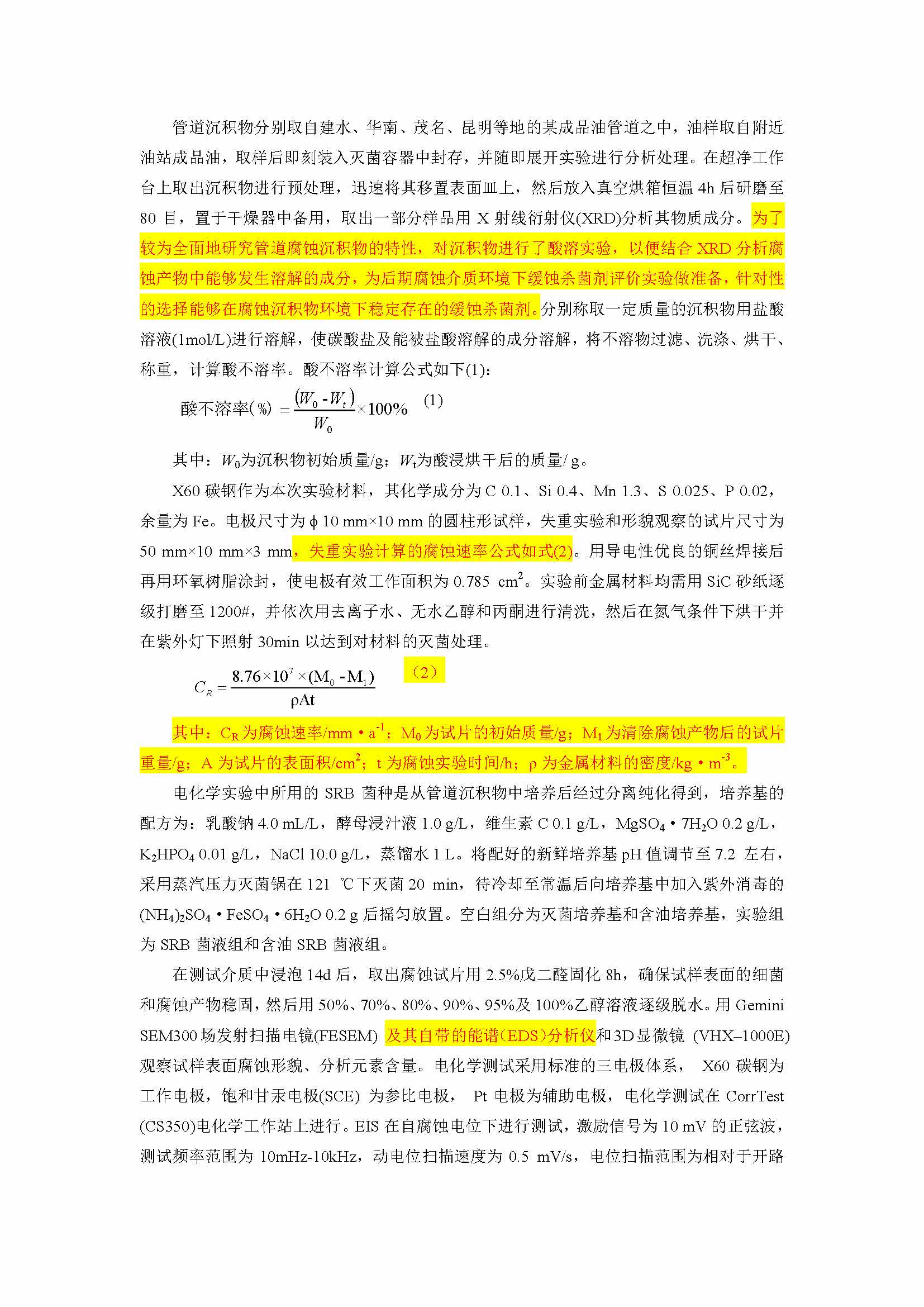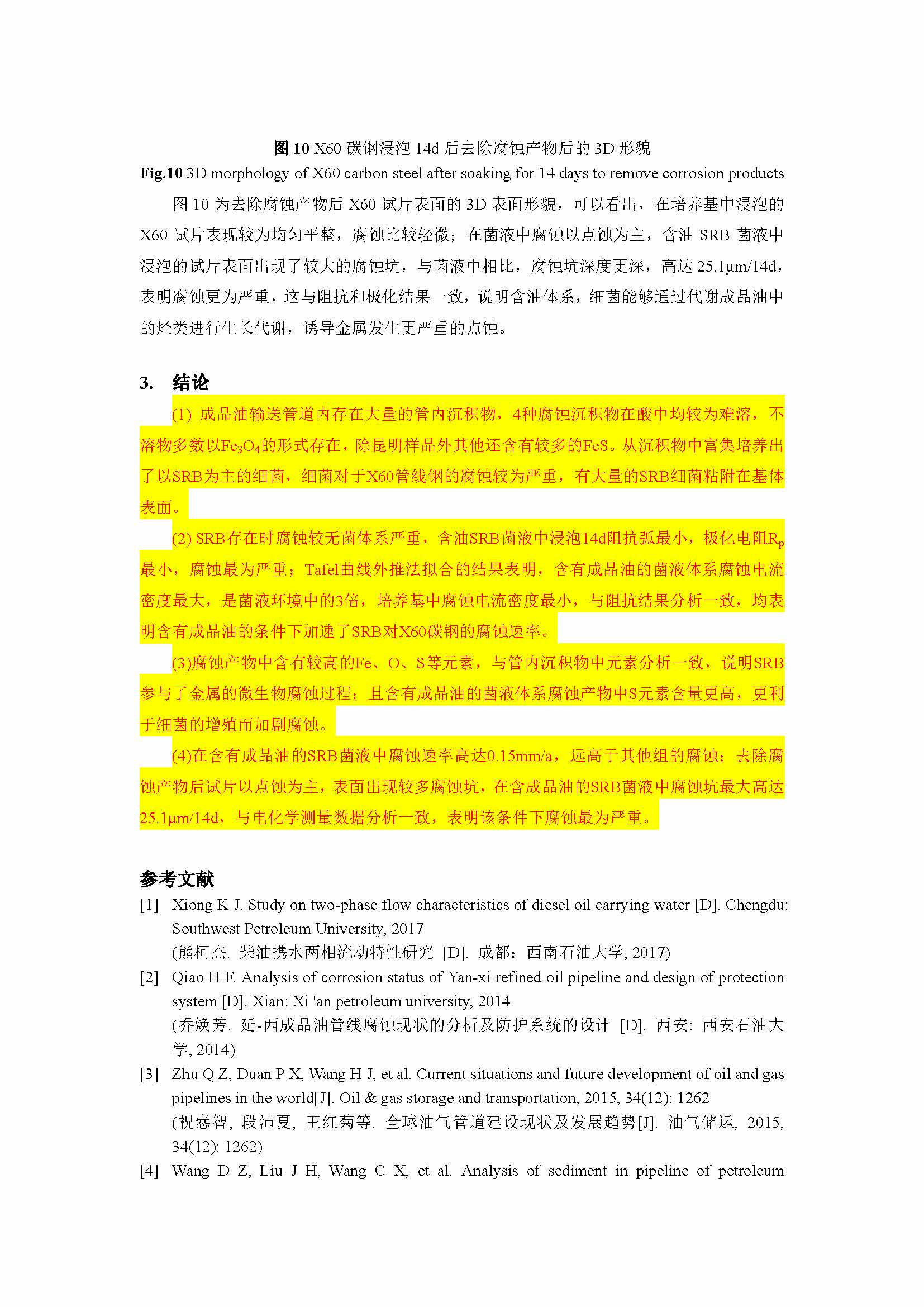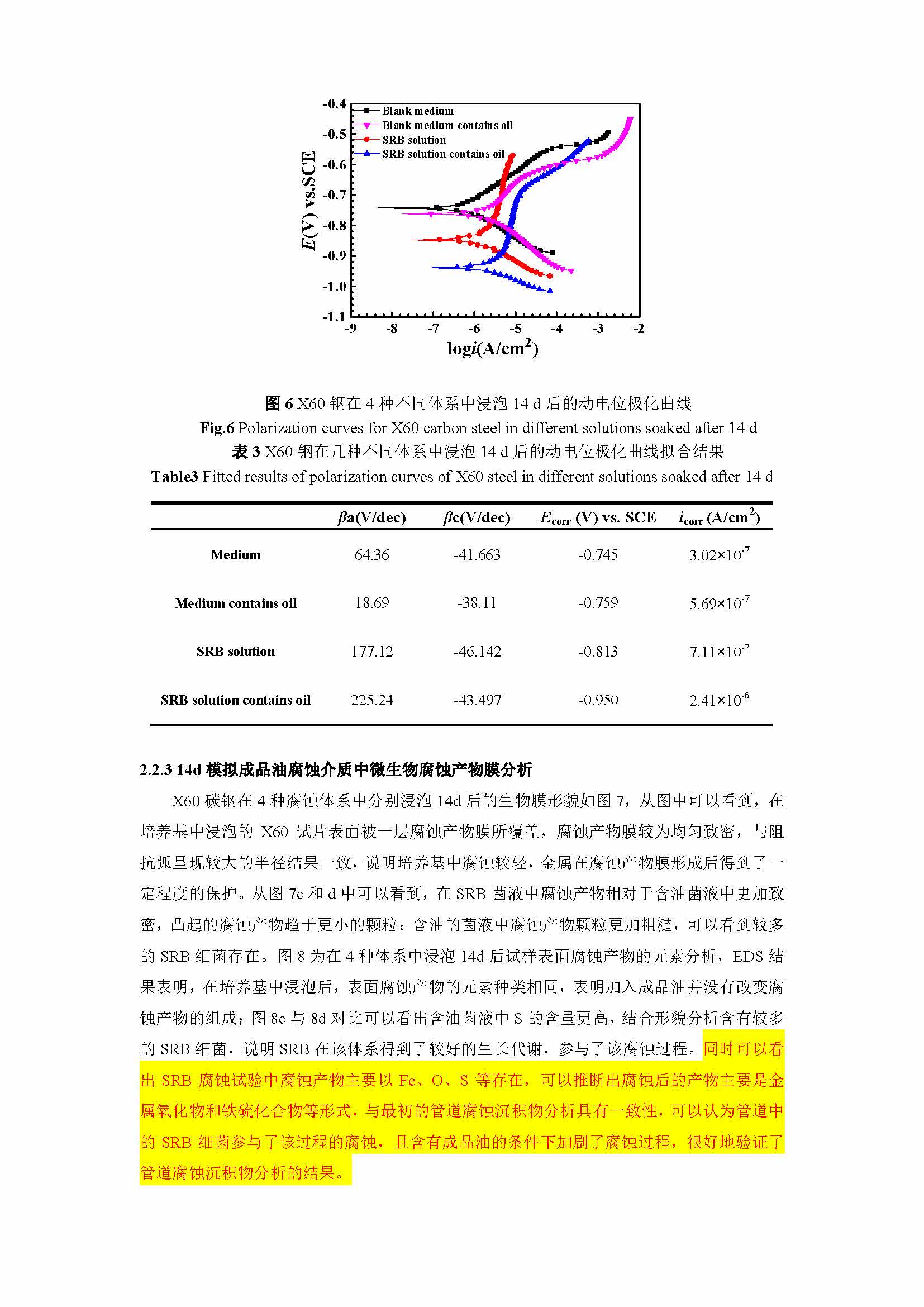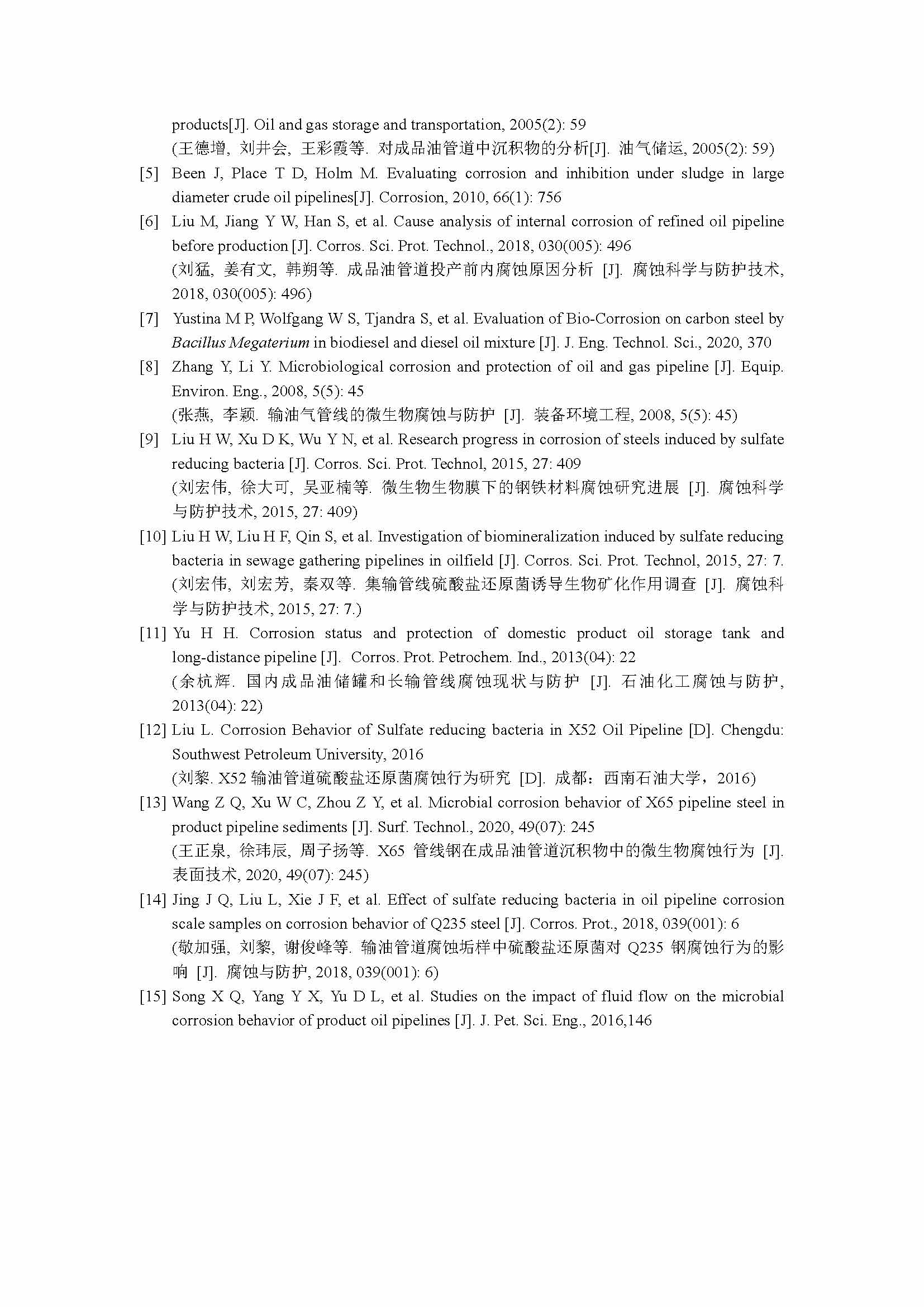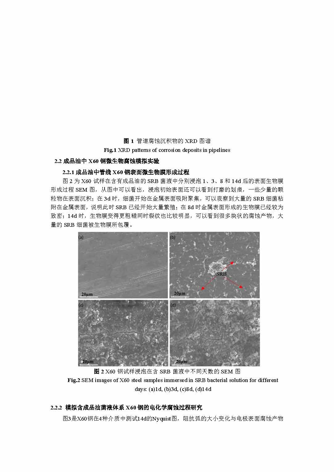 标签: 成品油输送管线内腐蚀, 硫酸盐还原菌, 铁细菌, X60碳钢, 微生物腐蚀