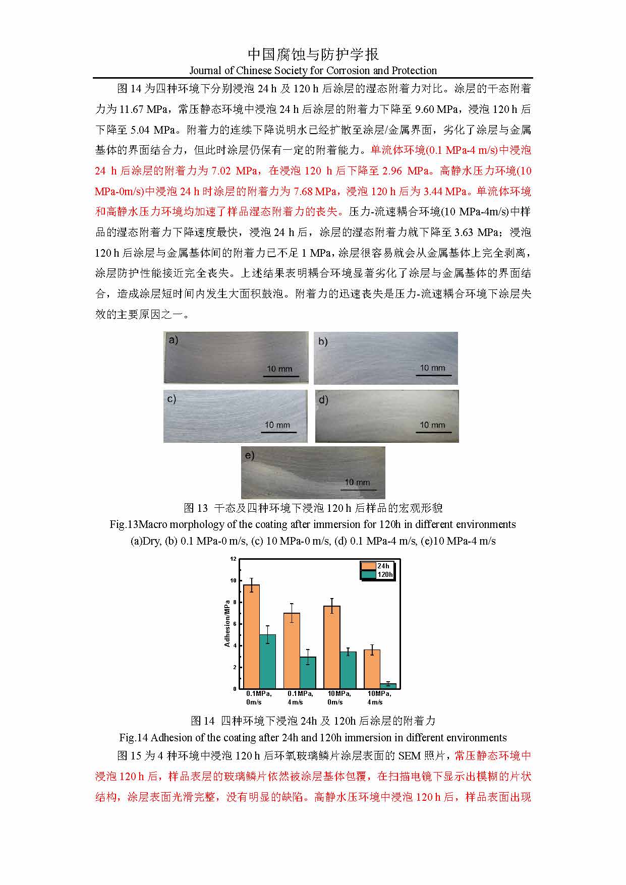 深海压力-流速耦合环境对环氧玻璃鳞片涂层失效行为的影响