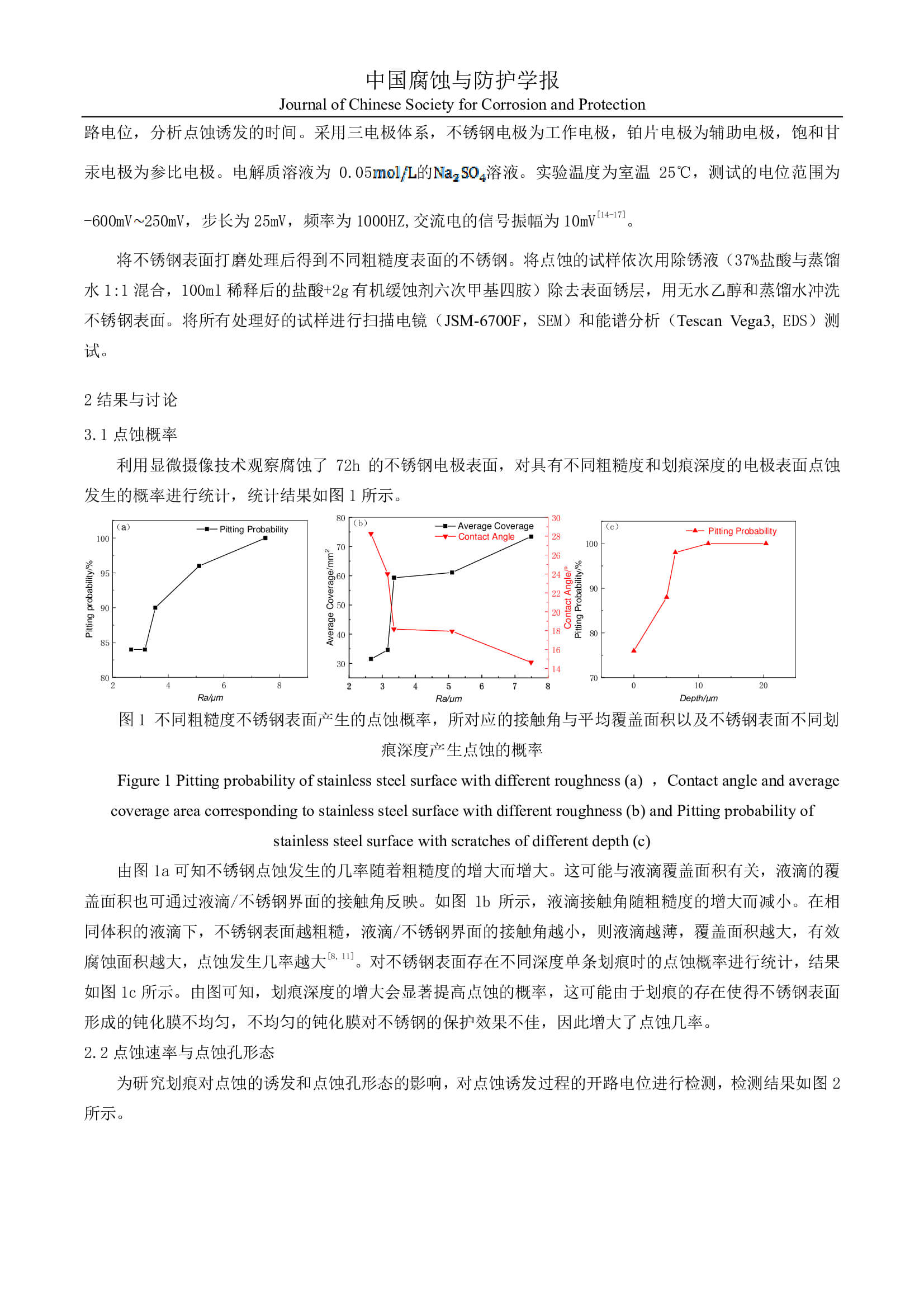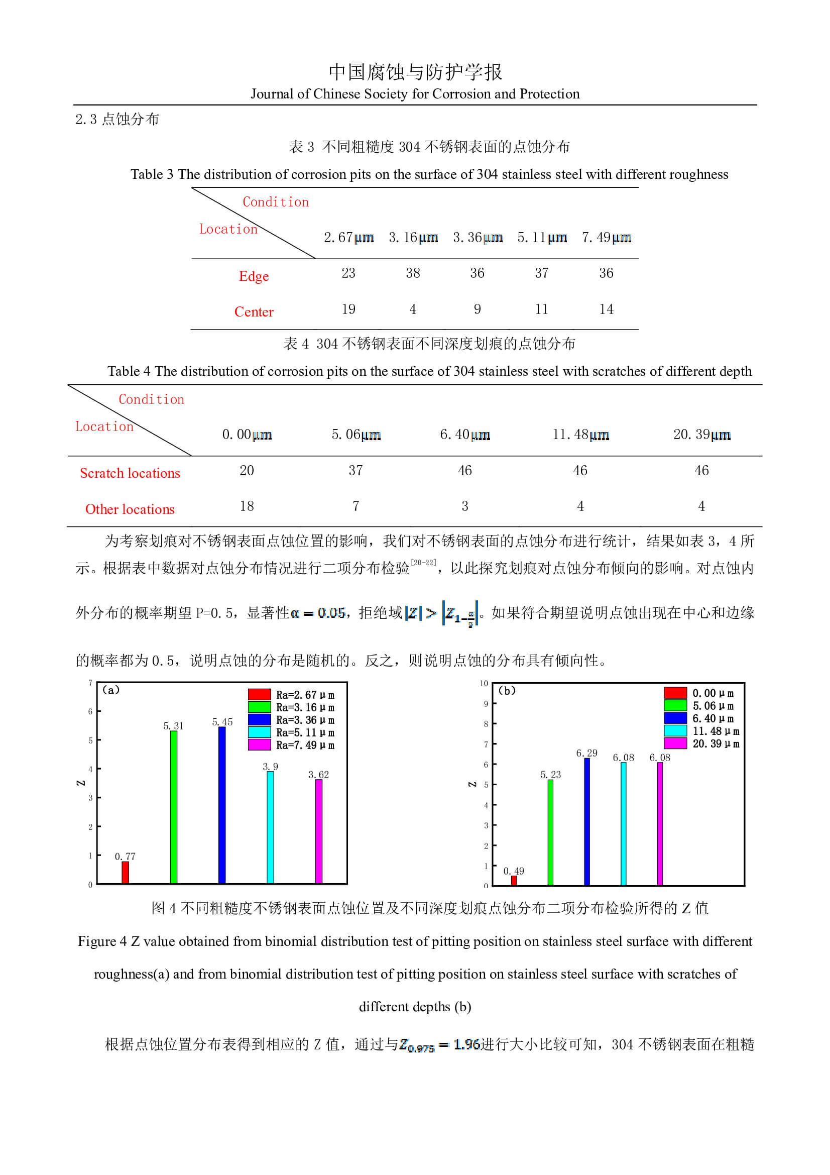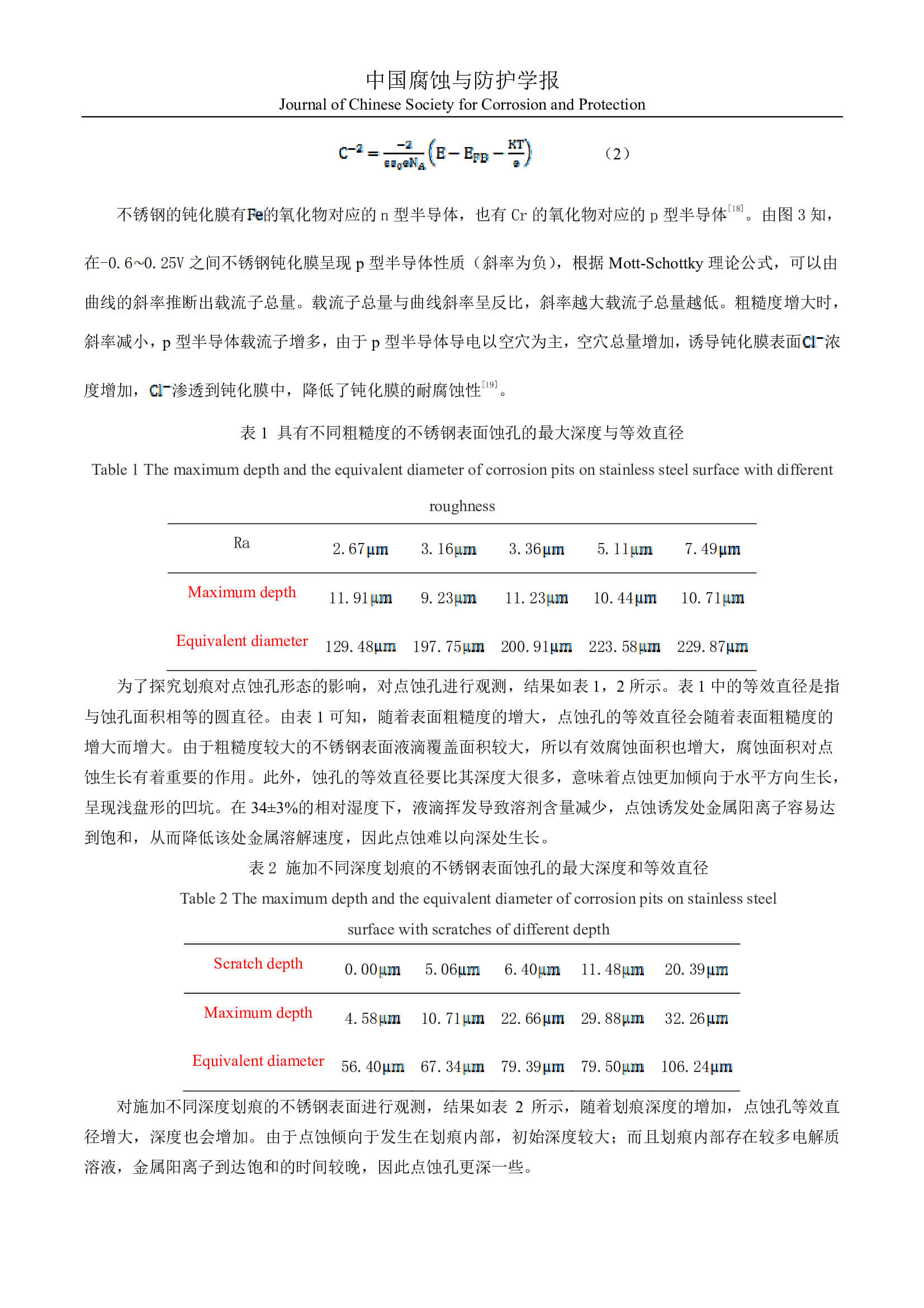 表面划痕对 304 不锈钢液滴腐蚀行为的影响