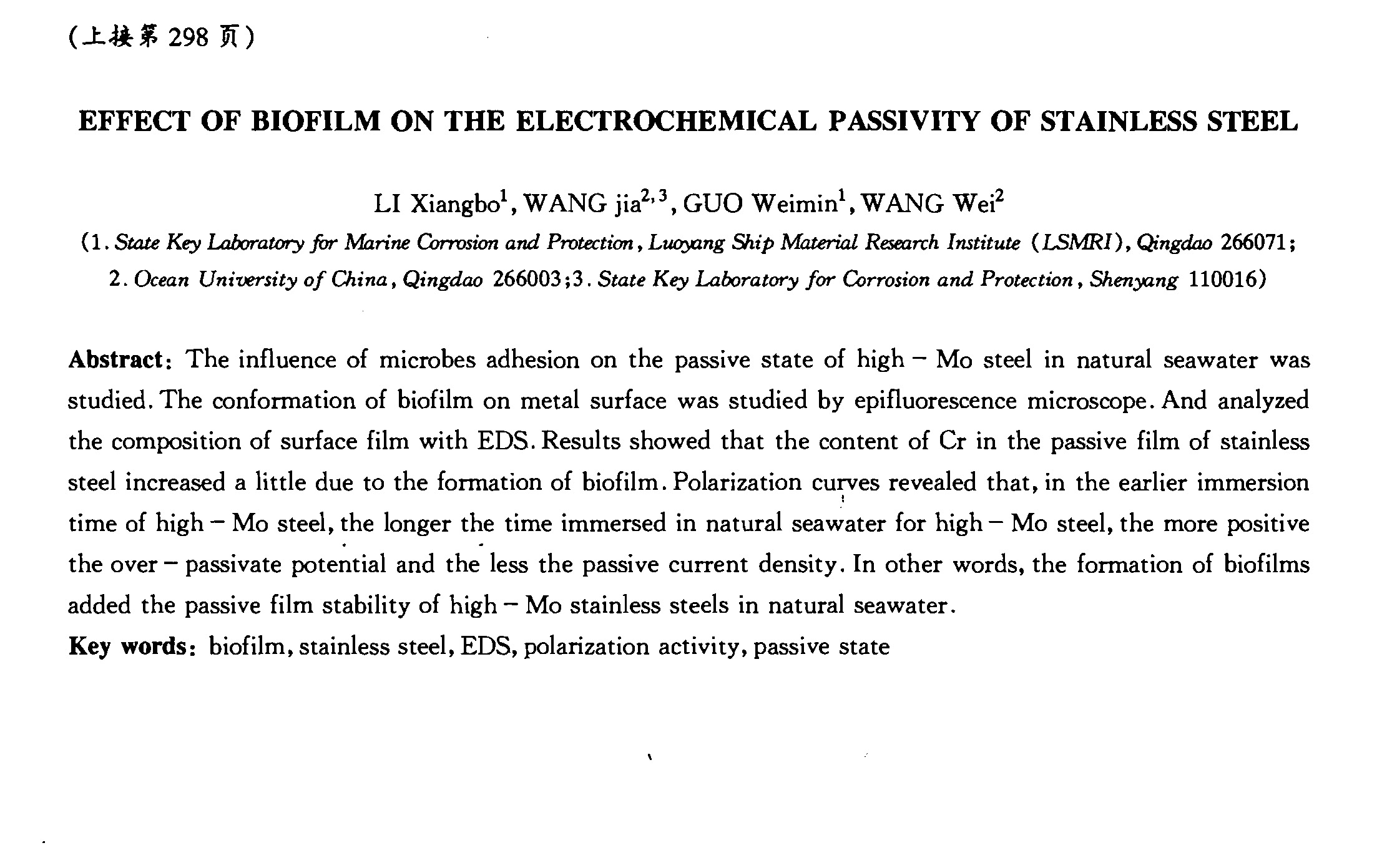 2021-08-03 14:59:45 作者:李相波; 王佳; 李文军; 郭为民; 王伟 来源:中国腐蚀与防护学报 分享至: