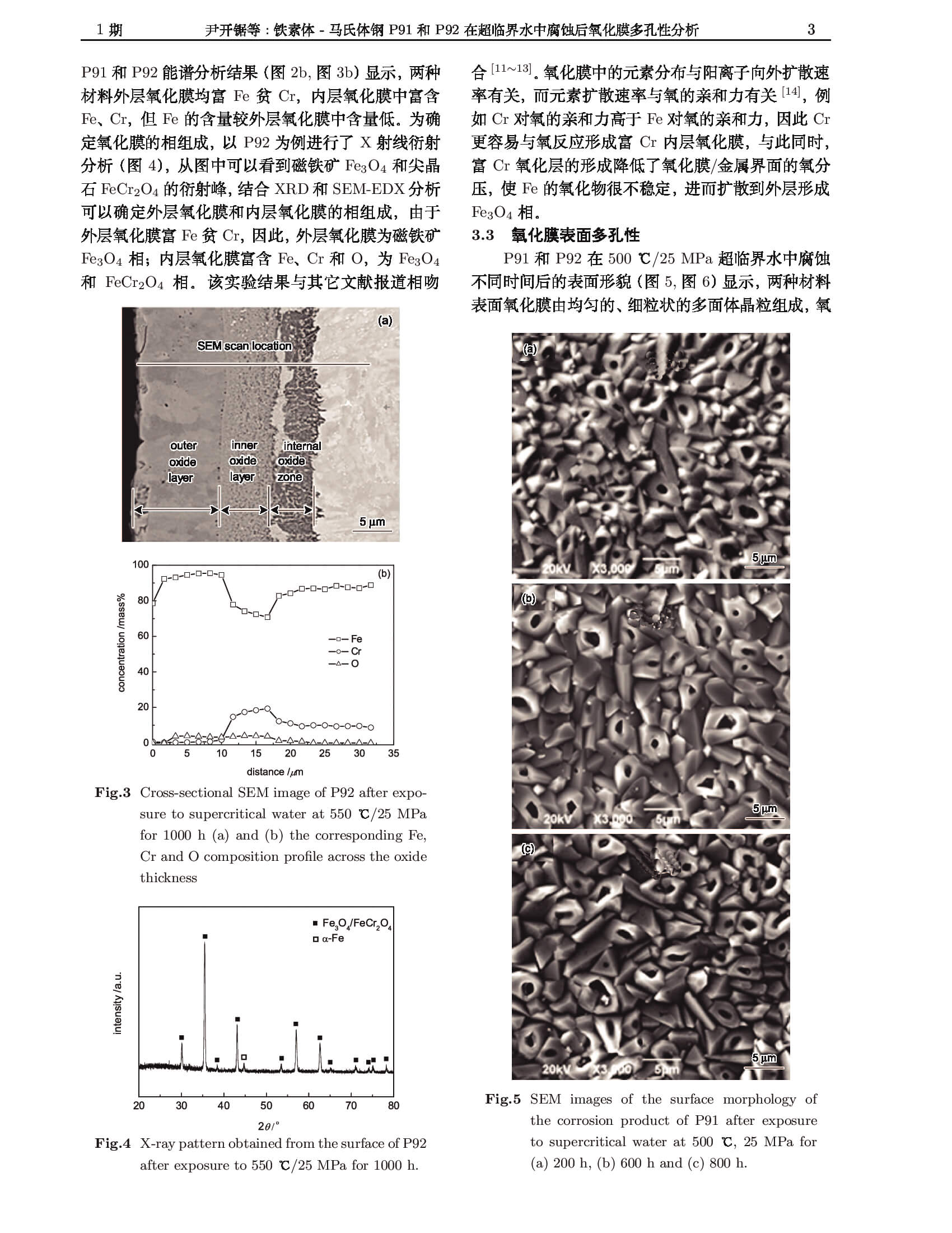 铁素体-马氏体钢P91和P92在超临界水中腐蚀后氧化膜多孔性分析