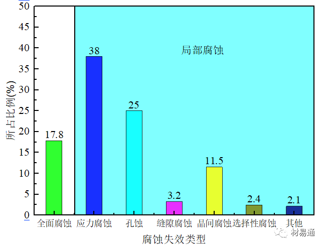 腐蚀失效:腐蚀是材料表面与服役环境发生物理或化学的反应,使材料发生损坏或变质的现象,材料发生的腐蚀使其不能发挥正常的功能则称为腐蚀失效。腐蚀有多种形式,有均匀遍及材料表面的均匀腐蚀和只在局部地方出现的局部腐蚀,局部腐蚀又分为点腐蚀、晶间腐蚀、缝隙腐蚀、应力腐蚀开裂、腐蚀疲劳等。