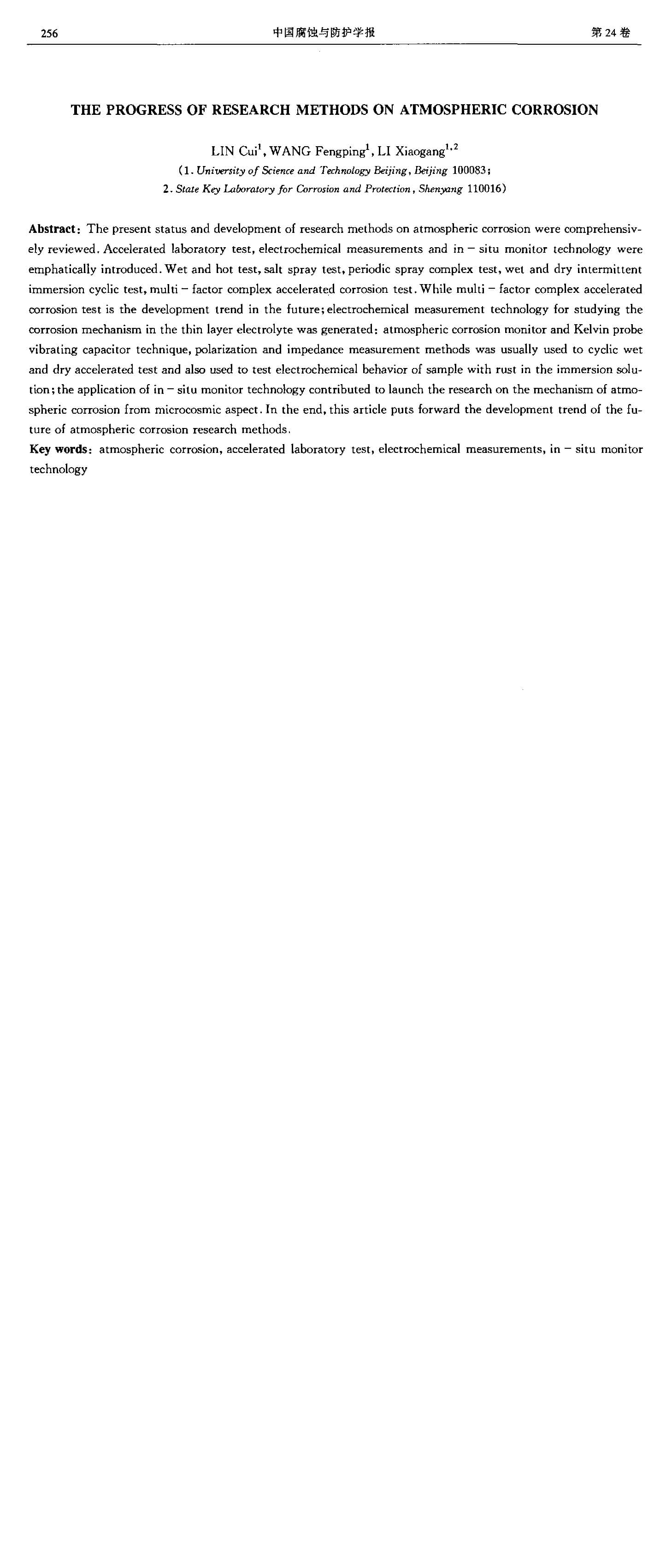 2021-08-06 14:44:28 作者:林翠,王凤平,李晓刚 来源:中国腐蚀与防护学报 分享至: