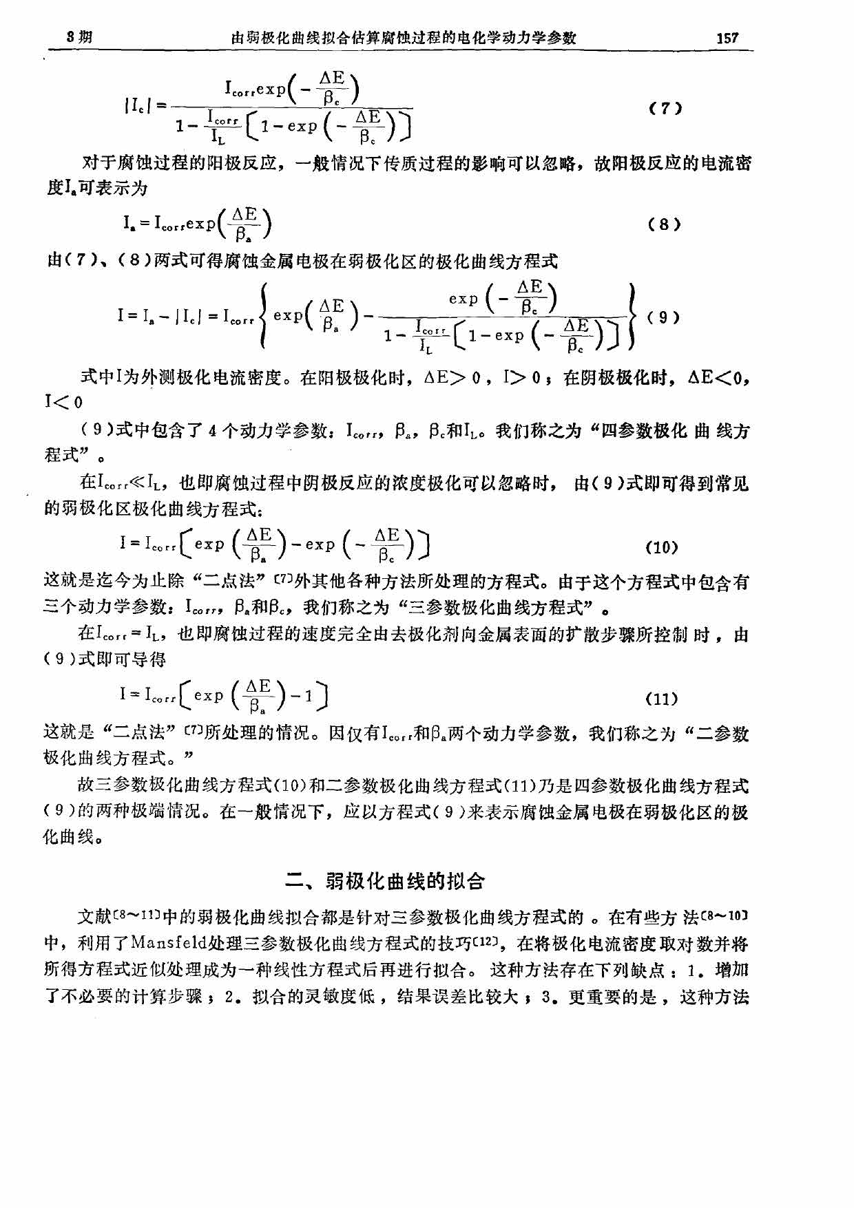 由弱极化曲线拟合估算腐蚀过程的电化学动力学参数
