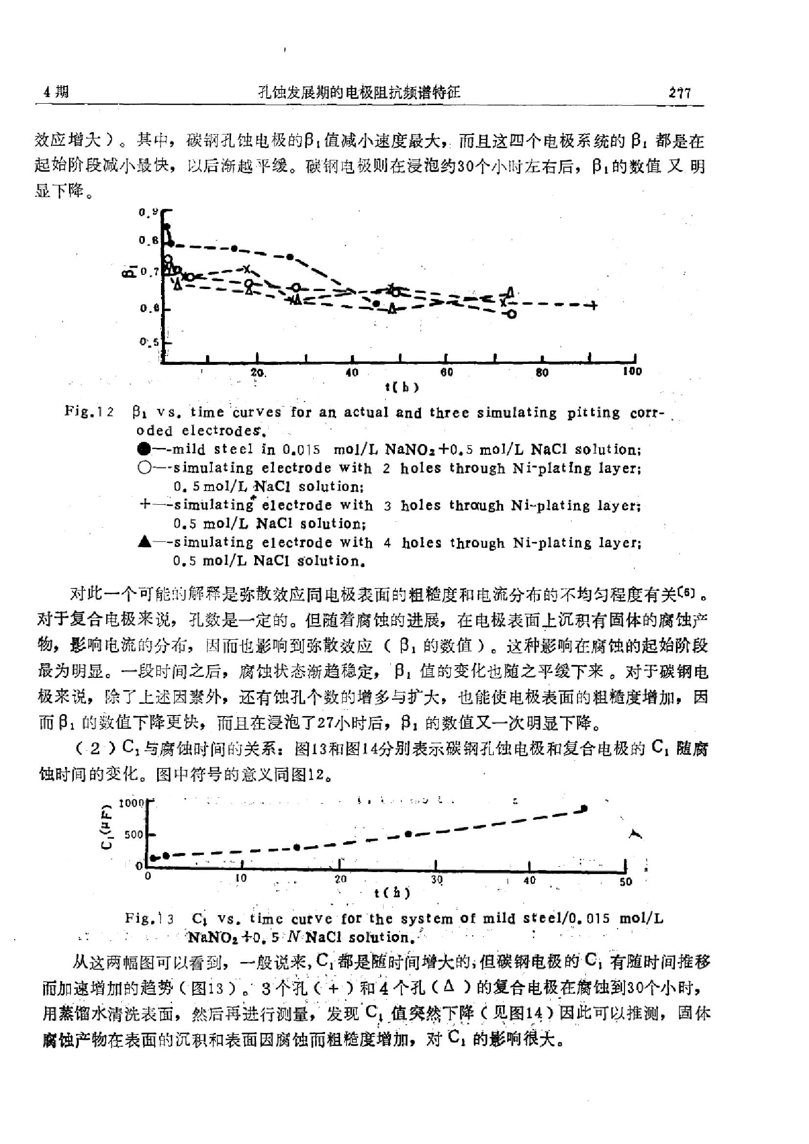 孔蚀发展期的电极阻抗频谱特征