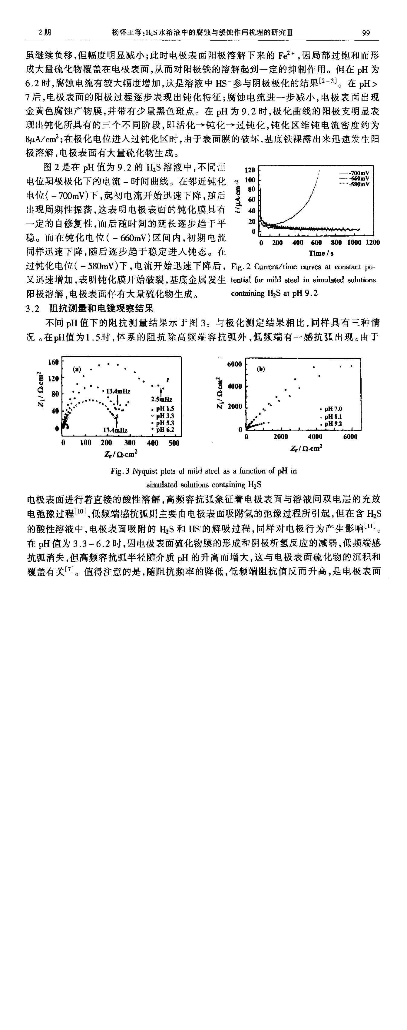 H2S水溶液中的腐蚀与缓蚀作用机理的研究 Ⅲ.不同pH值H2S溶液中碳钢的腐蚀电化学行为