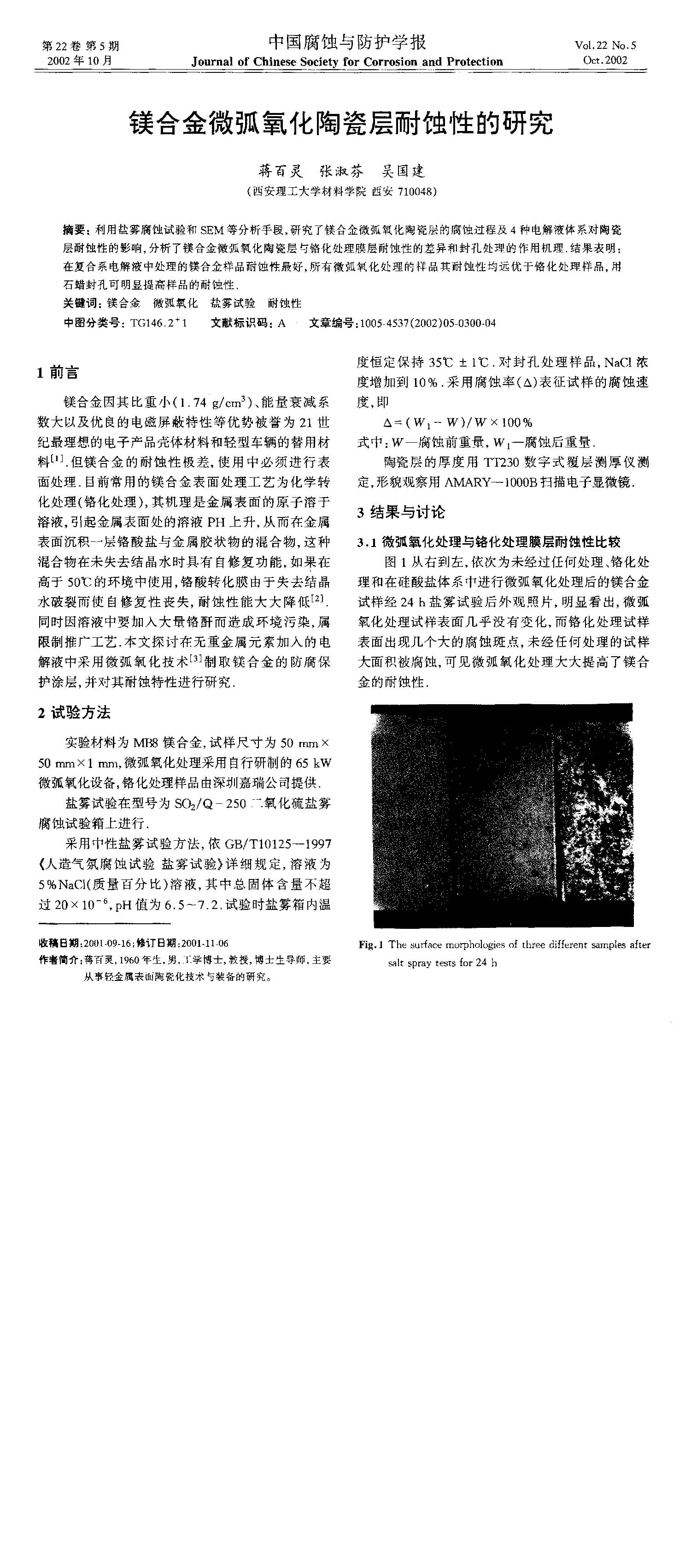 镁合金微弧氧化陶瓷层耐蚀性的研究