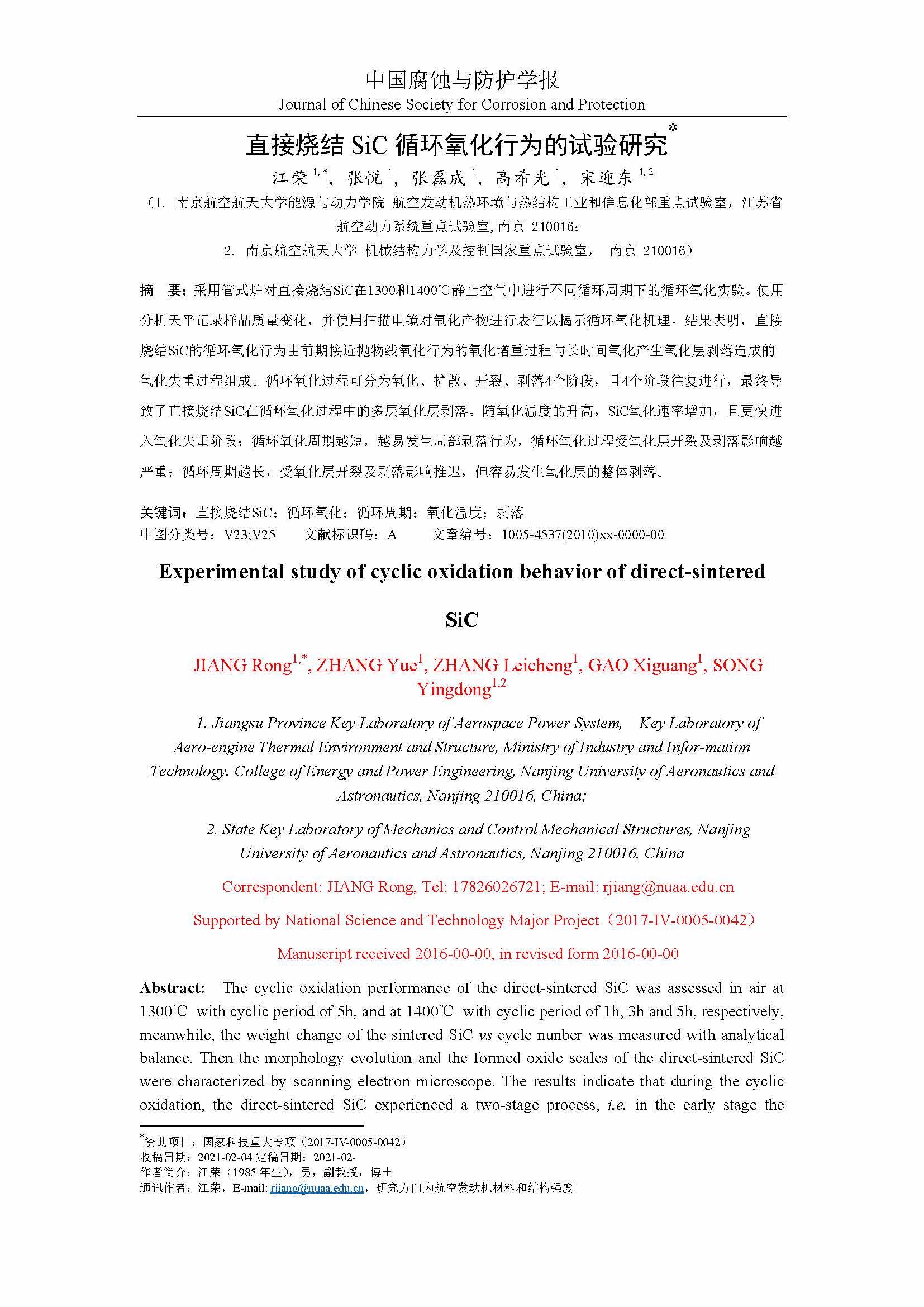2021-08-19 14:23:23 作者:江荣 张悦 张磊成 高希光 宋迎东 来源:中国腐蚀与防护学报 分享至: