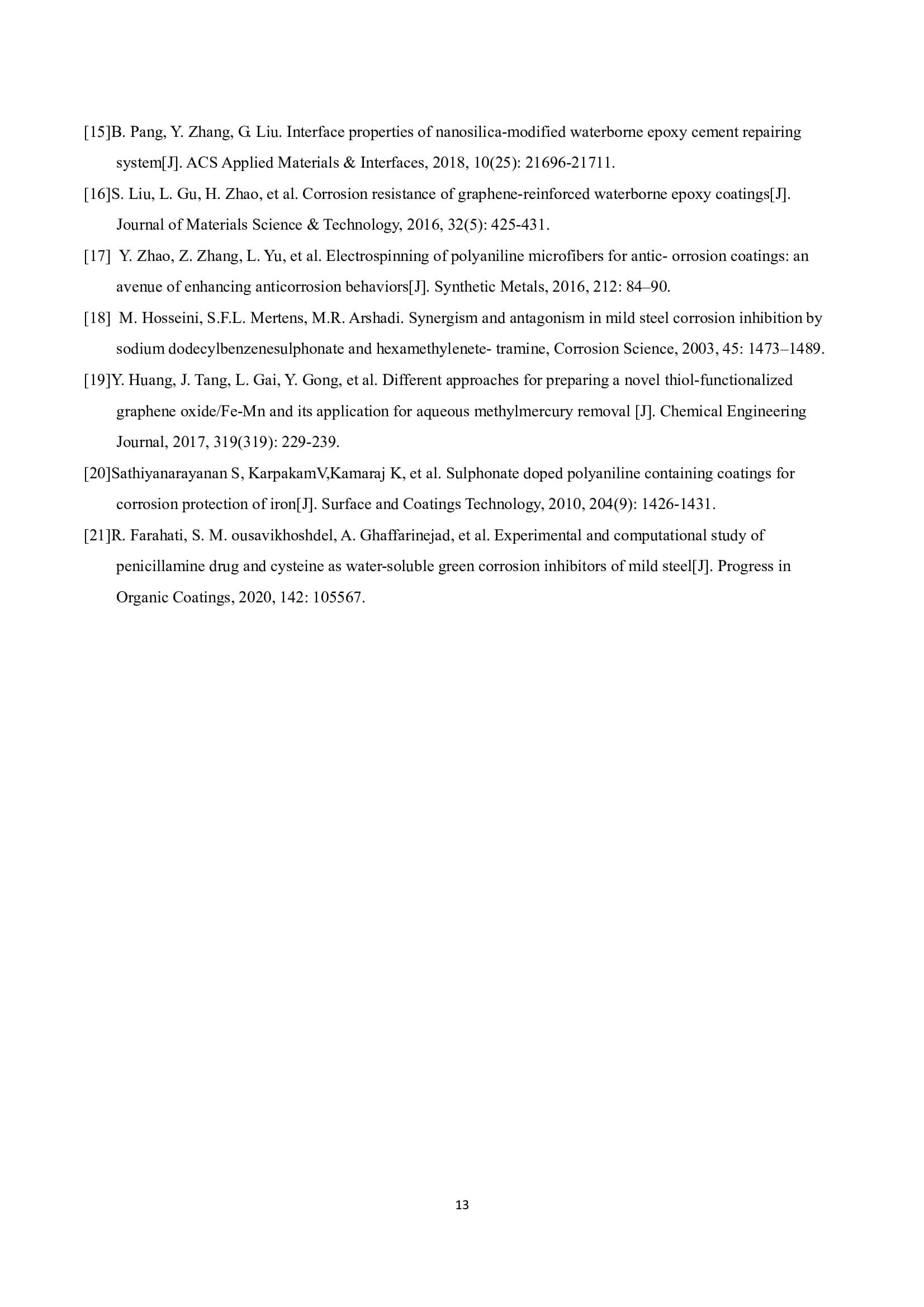 不锈钢表面聚苯胺纳米纤维/改性氧化石墨烯/水性环氧复合涂层的制备与防护性能研究